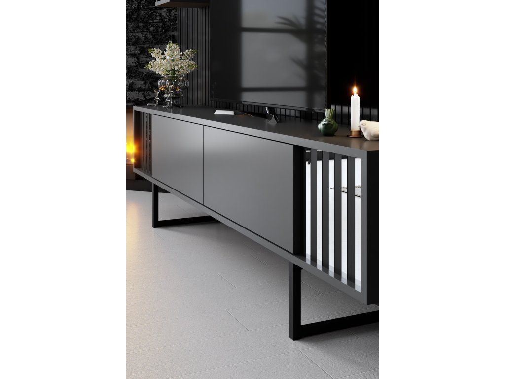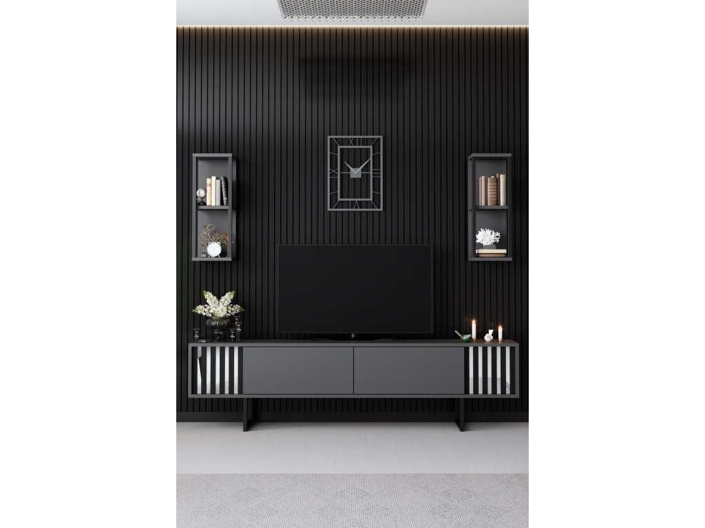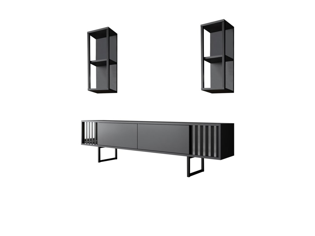 S elegantním a moderním designem tento TV stolek okamžitě pozvedne vzhled vašeho obývacího pokoje. Kombinace antracitové a černé barvy dodává moderní nádech, díky čemuž se perfektně hodí do jakéhokoli interiéru.