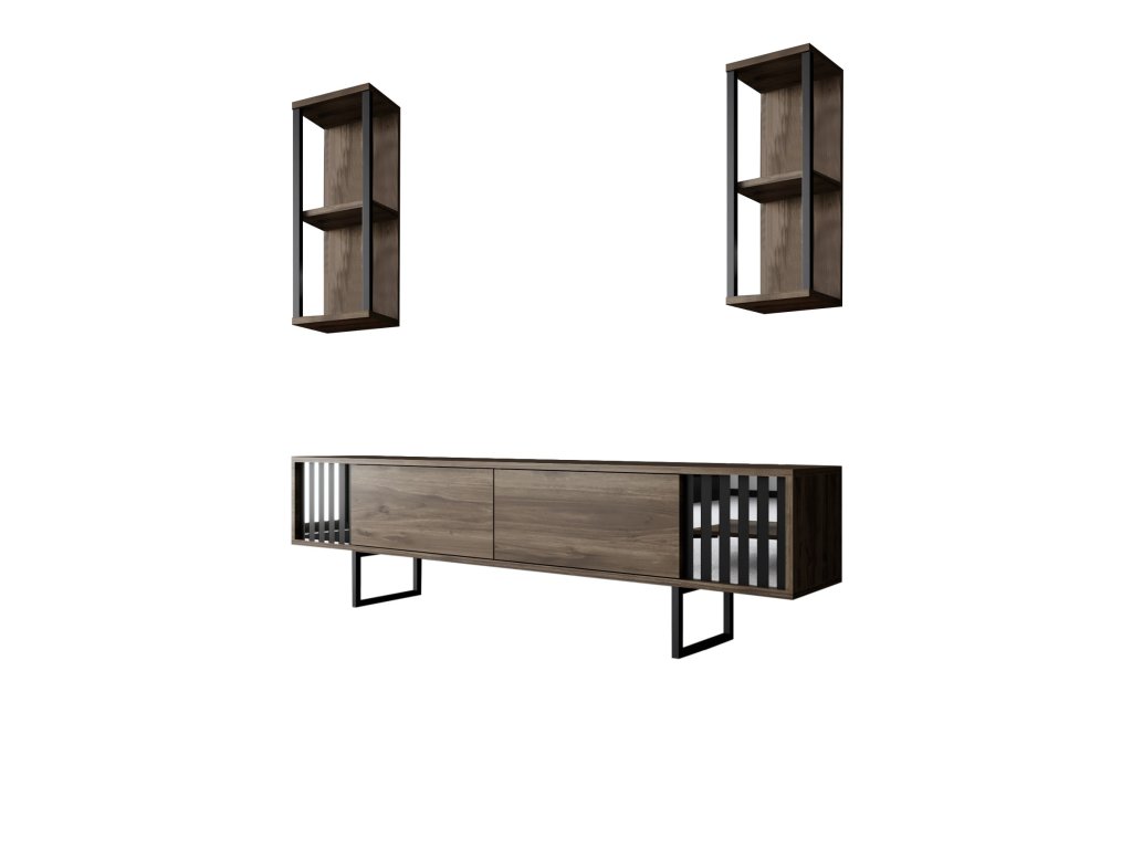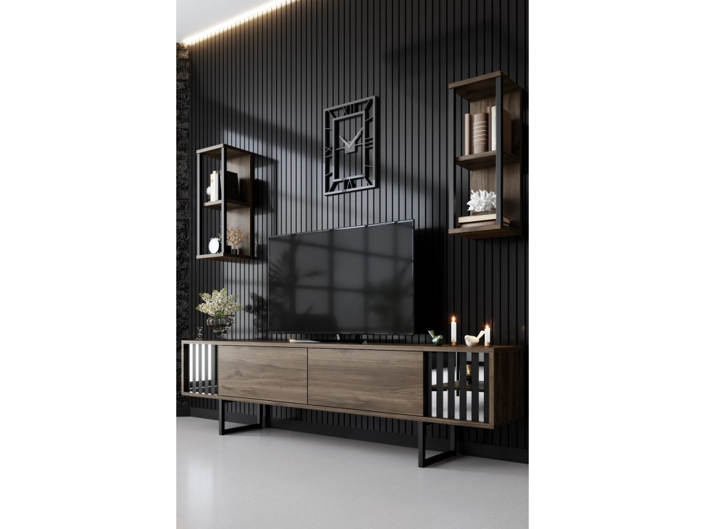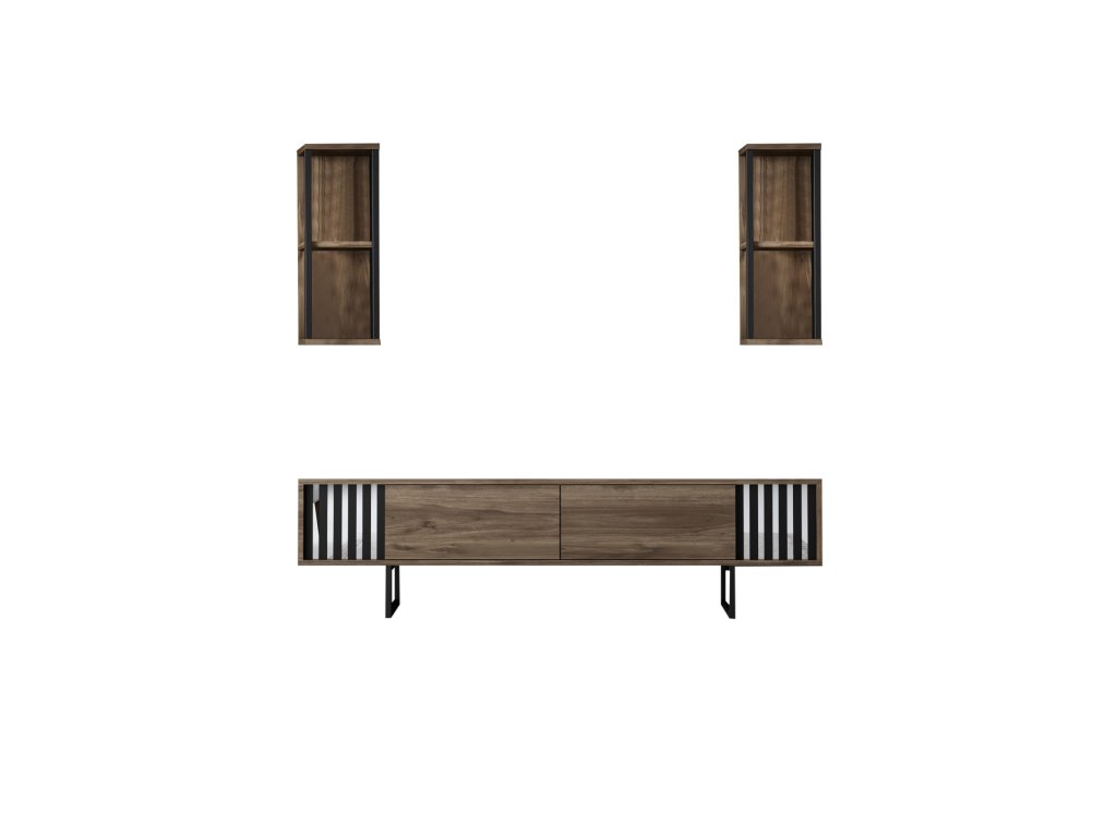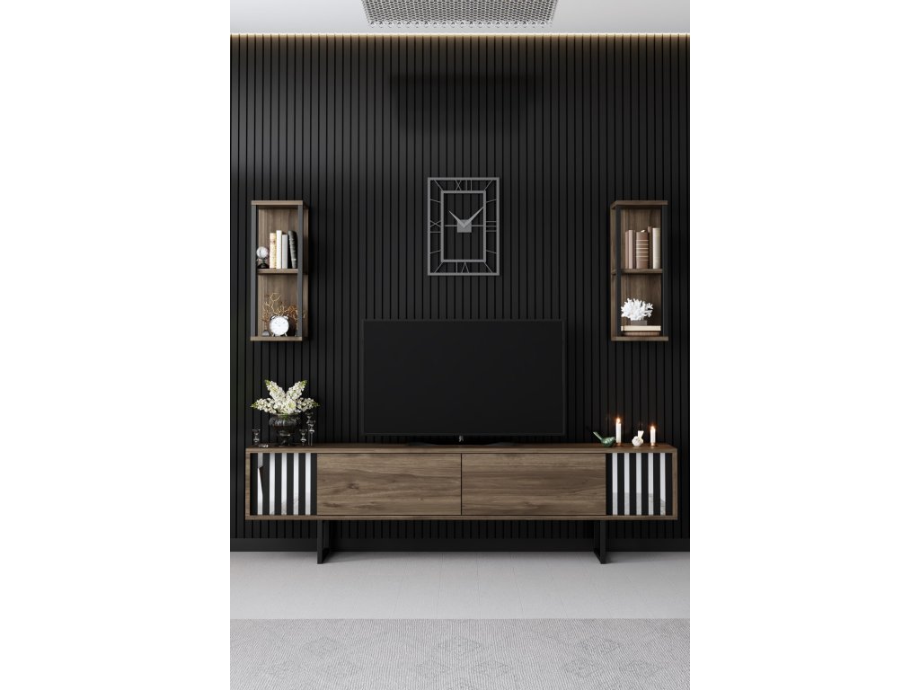 Díky elegantnímu designu a sofistikované barevné kombinaci ořechového dřeva a černé je naše televizní skříňka perfektním doplňkem do každého moderního domova. Bez námahy splyne s jakýmkoli stávajícím nábytkem a vylepší celkovou estetiku vašeho obývacího pokoje.