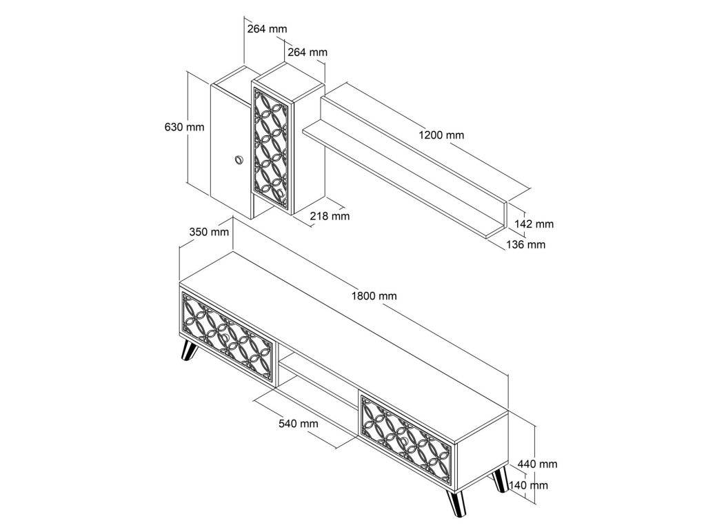 - Rozměry TV skříňky: Š180 cm x V44 cm x H35 cm