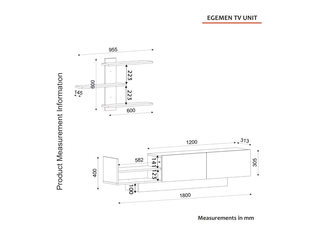 - Rozměry TV stolku: Šířka: 180 cm, Výška: 40 cm, Hloubka: 31,8 cm