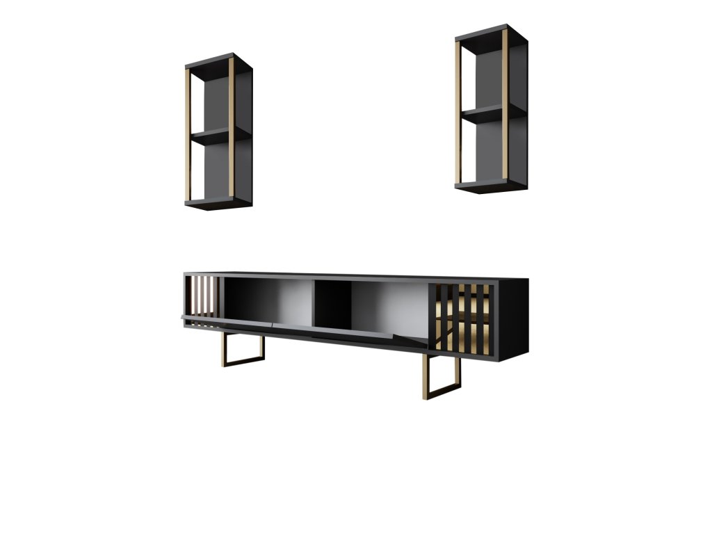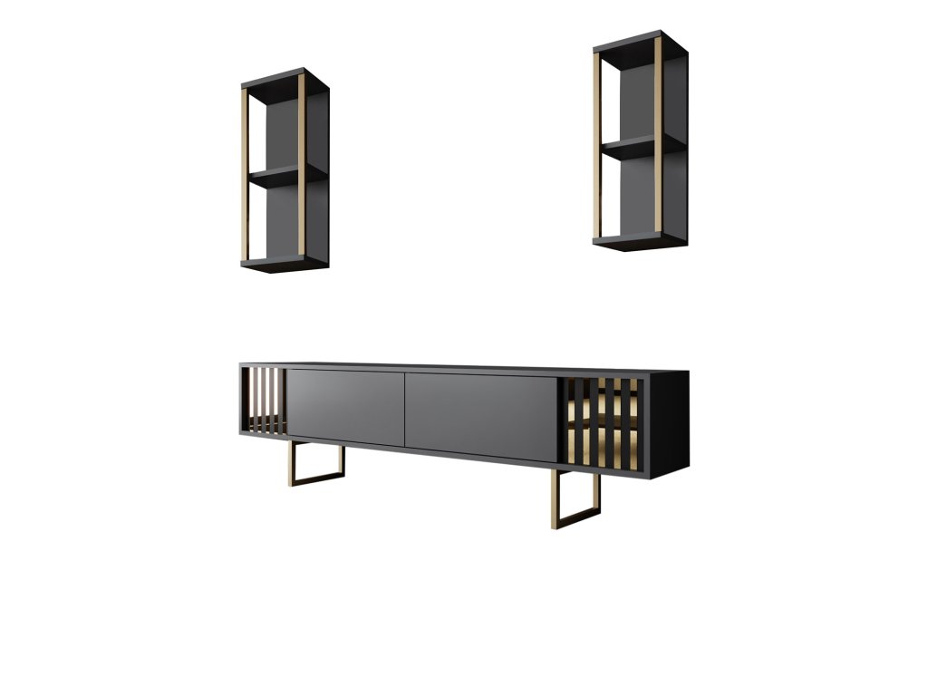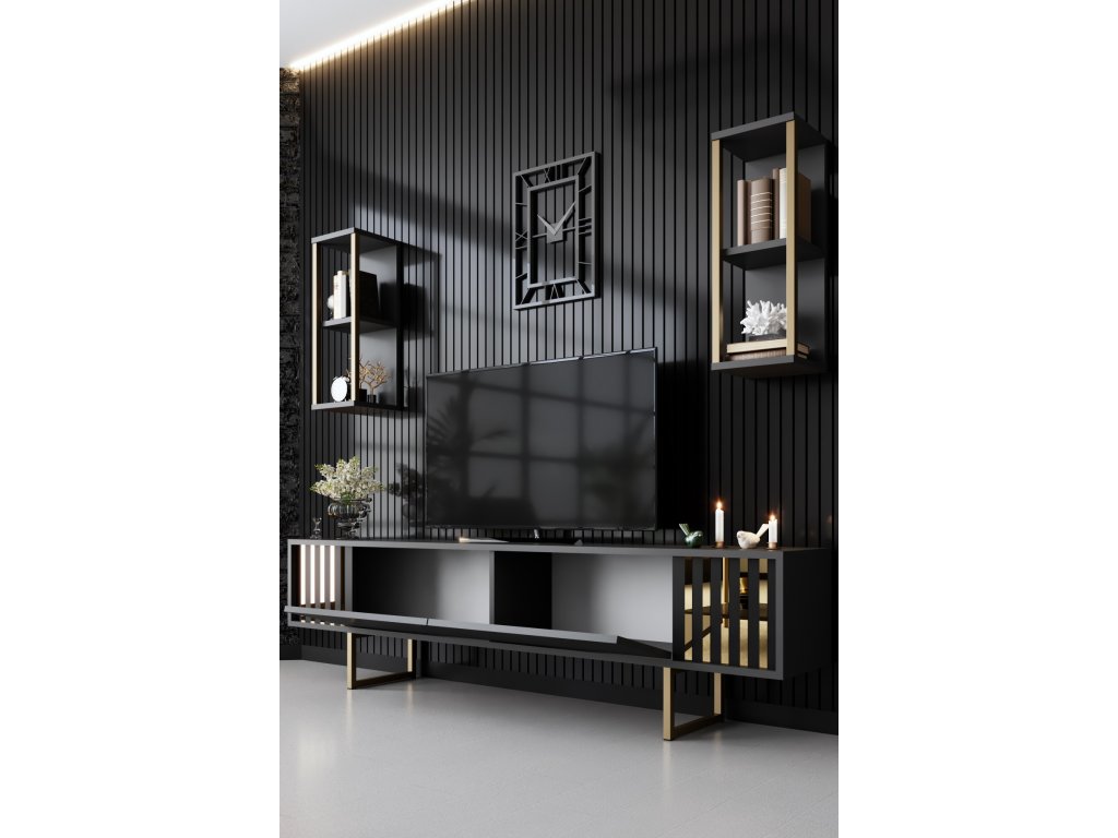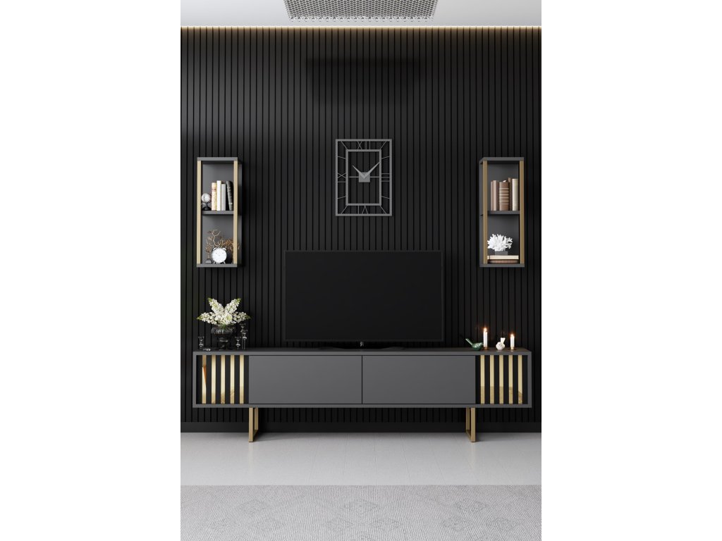 Gold Line luxusní obývací stěna, antracit / černá