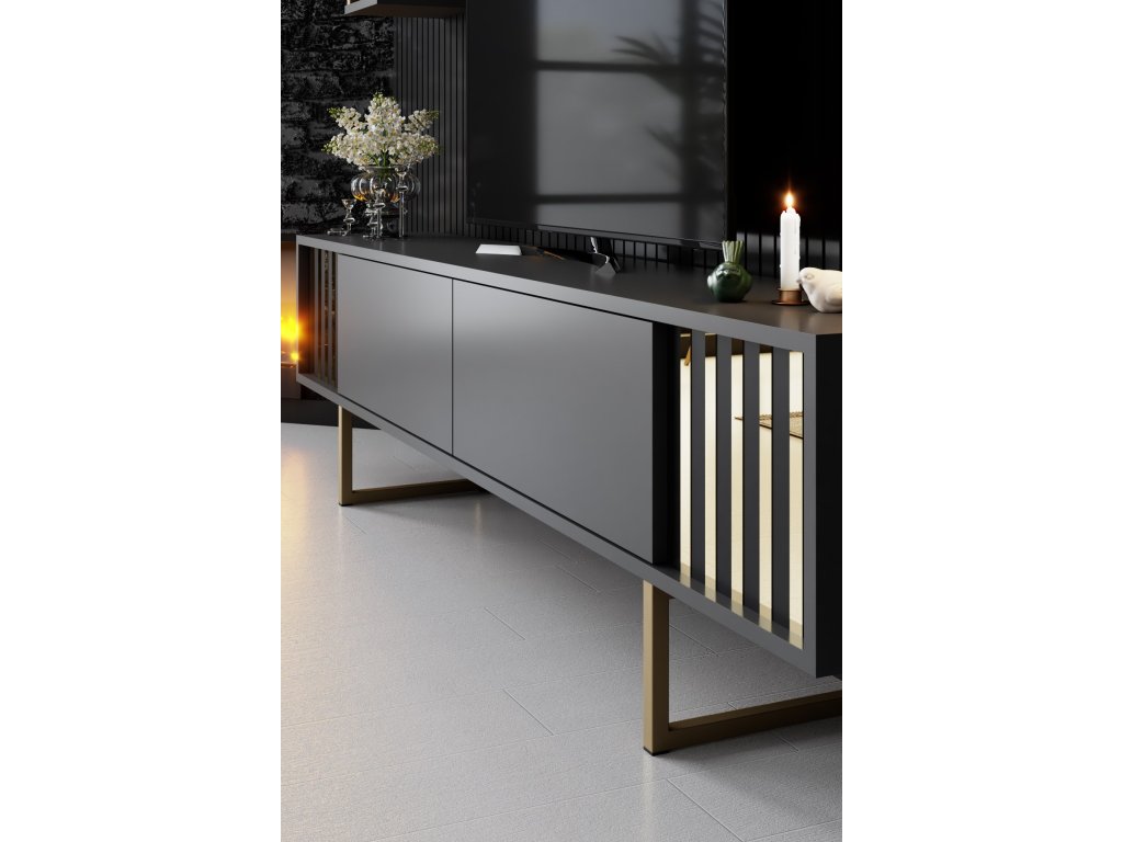 Televizní stolek je navržen ve stylové kombinaci antracitové a černé barvy, která dodá vašemu obývacímu pokoji nádech sofistikovanosti. Toto všestranné barevné schéma se bez námahy hodí k jakémukoli interiéru a stane se tak perfektním doplňkem vašeho domova.