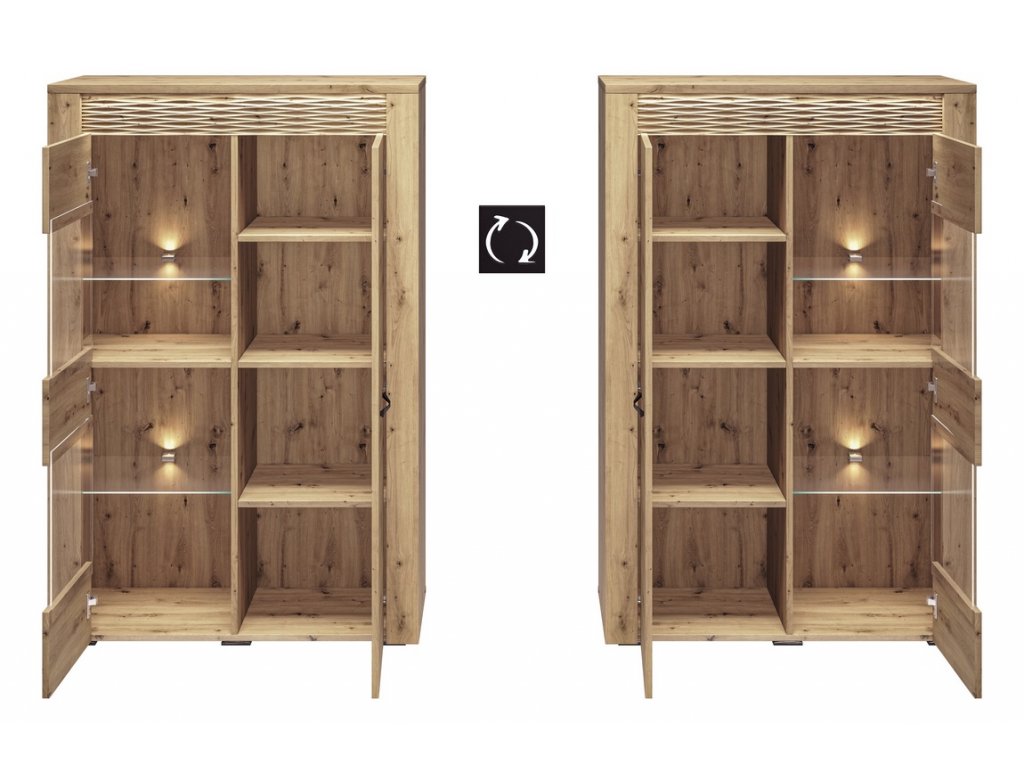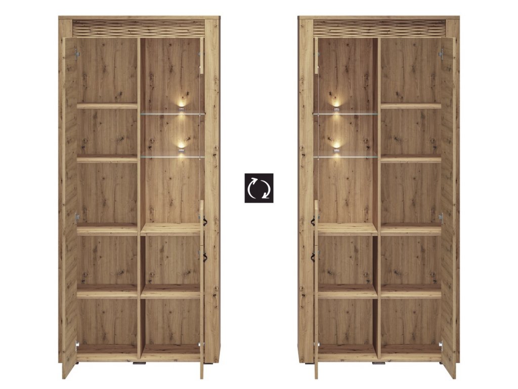 šířka: 55 cm | výška: 200 cm | hloubka: 40 cm Vitrína dvoudveřová je vyrobena z kvalitní desky LTD hraněné ABS páskou v barvě dub artisan. Dekorační riflovaná lišta nahoře je z...