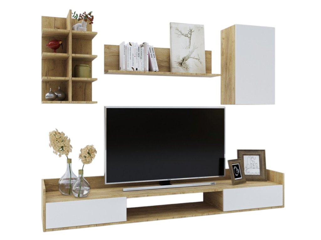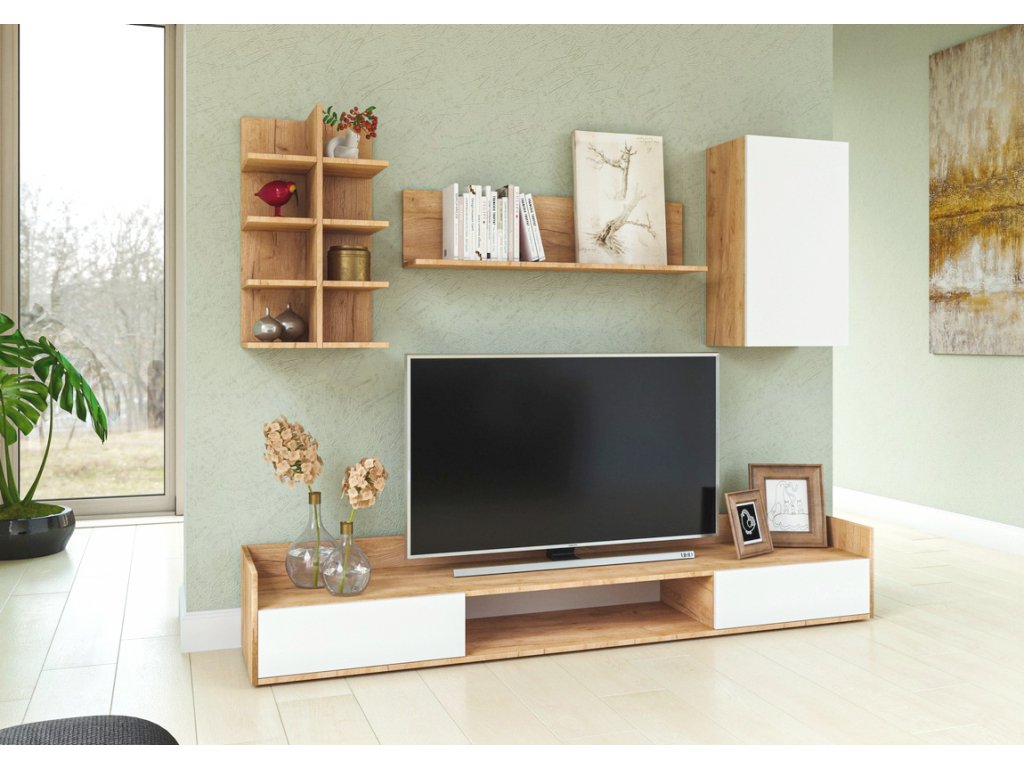 Obývací sestava ENBRUN dub kraft zlatý/bílá mat