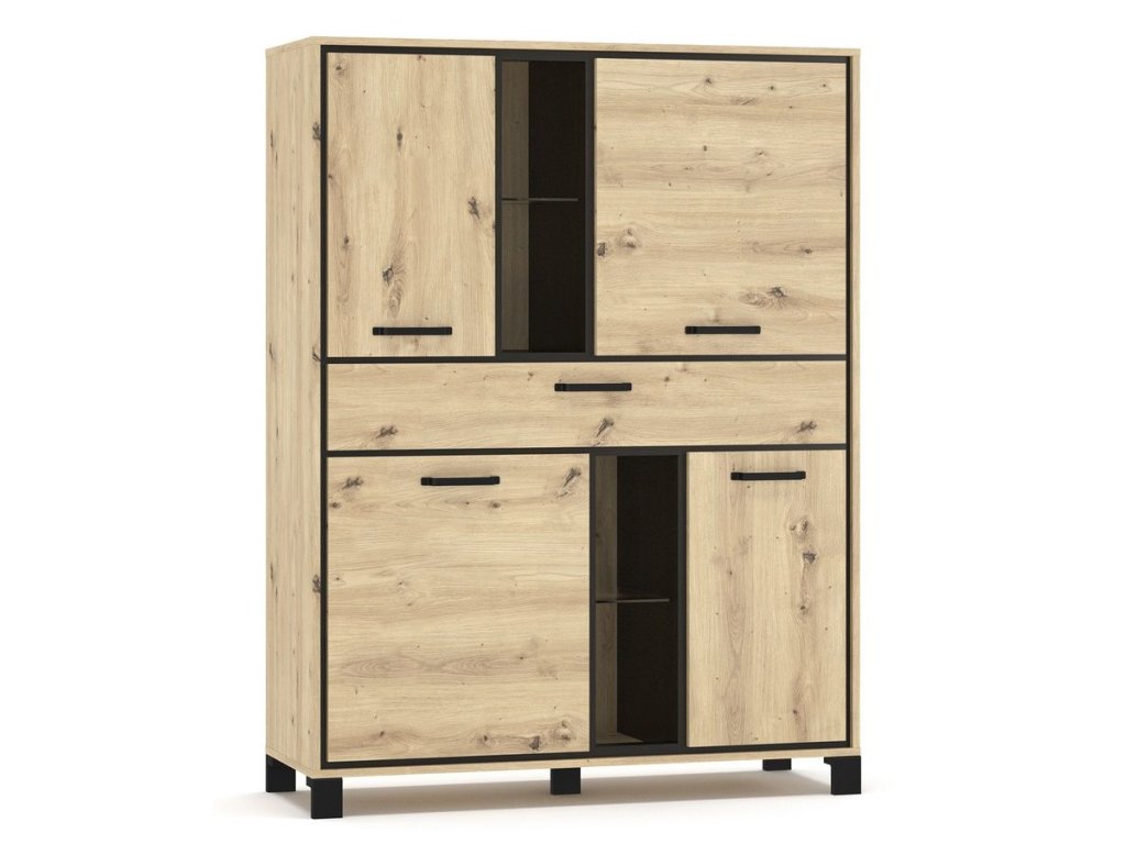 šířka: 117,4 cm | výška: 157,6 cm | hloubka: 41,2 cm Komoda čtyřdveřová se zásuvkou v moderním provedení dekoru přírodního dřeva. Nábytek je vyroben z kvalitní LTD desky v...