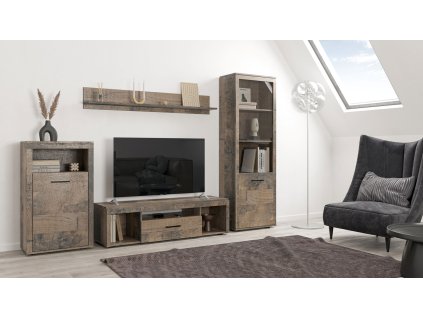 Obývací sestava. Systém je exkluzivní kolekce navržena v duchu vintage. Nábytek je vyroben z velmi kvalitní LTD o tloušťce 16 mm, horní deska zesílena na 32 mm, lišty na čele...