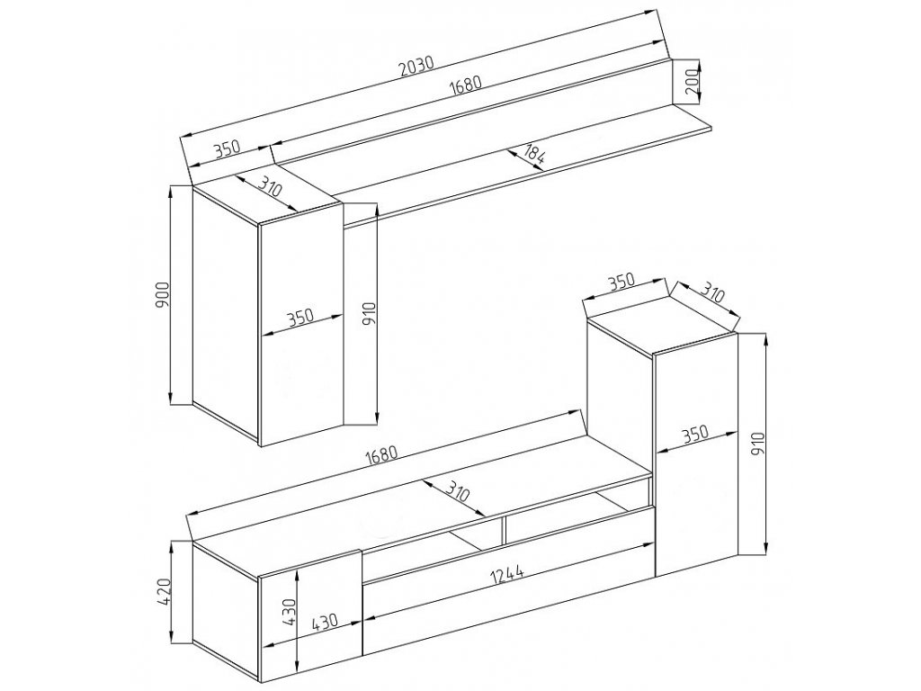 Obývací stěna LINE 1 je provedena v jednoduché linii, která se hodí do moderního interiéru. Korpus je vyroben z LTD desky odolné vůči poškrábání v barvě černá mat, dvířka jsou vyrobeny z kvalitní MDF desky v barvě černá lesk. Stěna se skládá z: komoda, závěsná skříňka, televizní stolek s výklopnými a klasickými dvířky a police. LED osvětlení není součástí balení. Dodáváme v demontovaném stavu.Doplňkové parametry