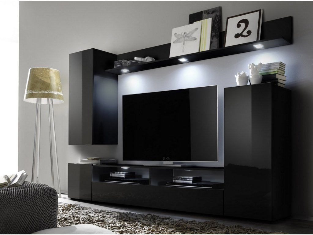 Obývací stěna LINE 1 černá/černý lesk