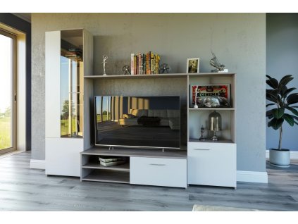 šířka: 220 cm | výška: 179 cm | hloubka: 41 cm Obývací stěna v elegantním designu. Nábytek je v barevném provedení bílá ma s šedým dubem kraftt. Nábytek je vyroben z kvalitního...