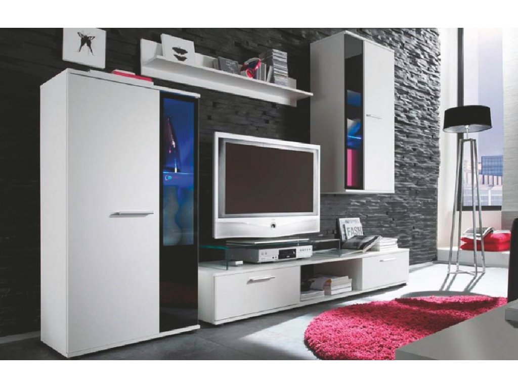 Moderní obývací stěna. Nábytek je vyroben z kvalitního lamina. Sestava se skládá z vitríny 59 x 31 x 115, TV stolku 176 x 40 x 28, závěsné vitríny 59 x 31 x 113 a police 102 x 18 x 16 cm. Obývací stěna je v barvě bílá mat. Sklo ve vitríně je čiré. Tato stěna se prodává jako sestava, jednotlivé díly nelze koupit zvlášť. Možnost doobjednání komody nebo LED osvětlení. Dodáváme v demontovaném stavu.Doplňkové parametry