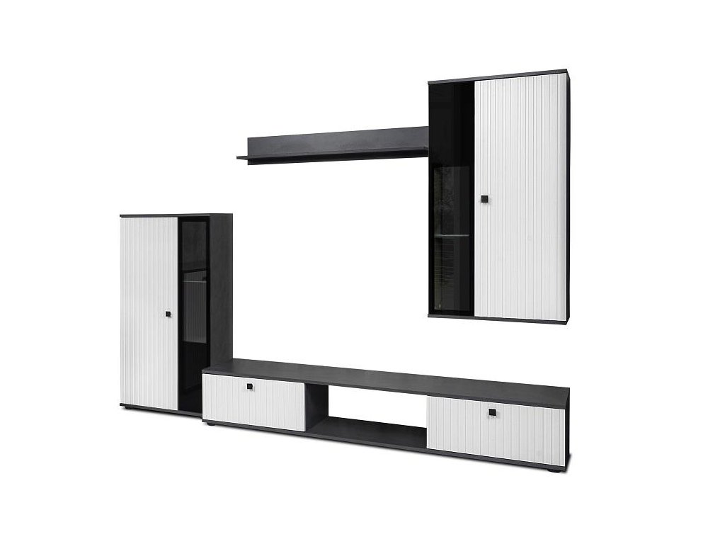 Moderní obývací stěna, která si zakládá na nejnovějších trendech bydlení. Nábytek je vyroben z kvalitní desky LTD v barevném provedení bílá/matera. Sestava se skládá ze dvou vitrín, televizního stolku a police a prodává se pouze jako sestava. Prostor pro televizi je - výška 91 cm, šířka 132 cm. Dodáváme v demontovaném stavu.Doplňkové parametry