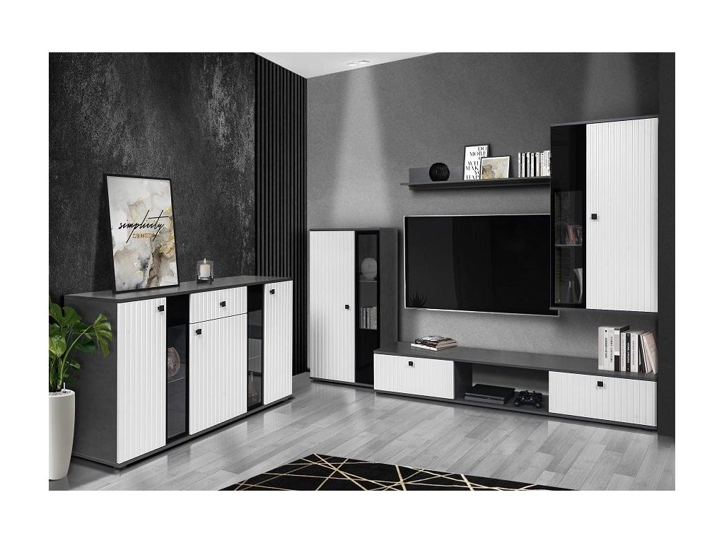 šířka: 0 cm | výška: 140 cm | hloubka: 0 cm Obývací sestava v moderním provedení. Korpus je vyroben z kvalitní desky LTD v barvě buk, dvířka a čela zásuvek jsou vyrobeny z desky...