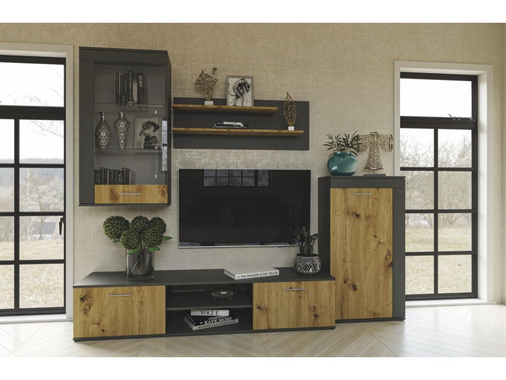 Obývací stěna VITO antracit/dub artisan