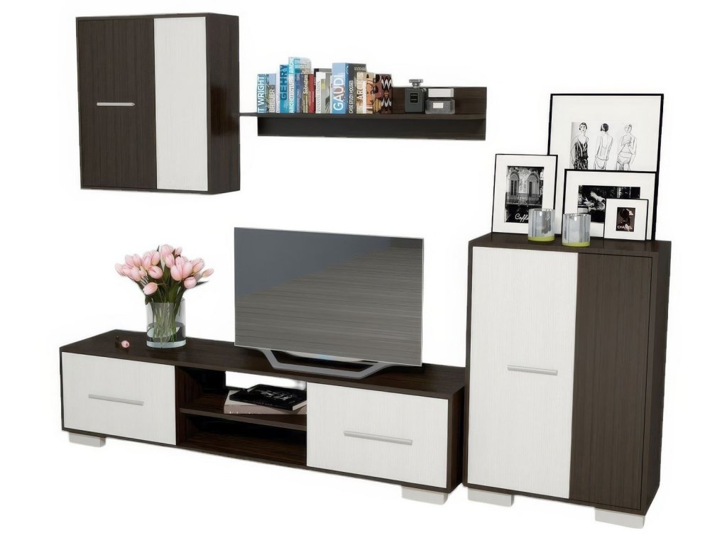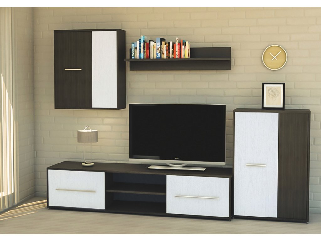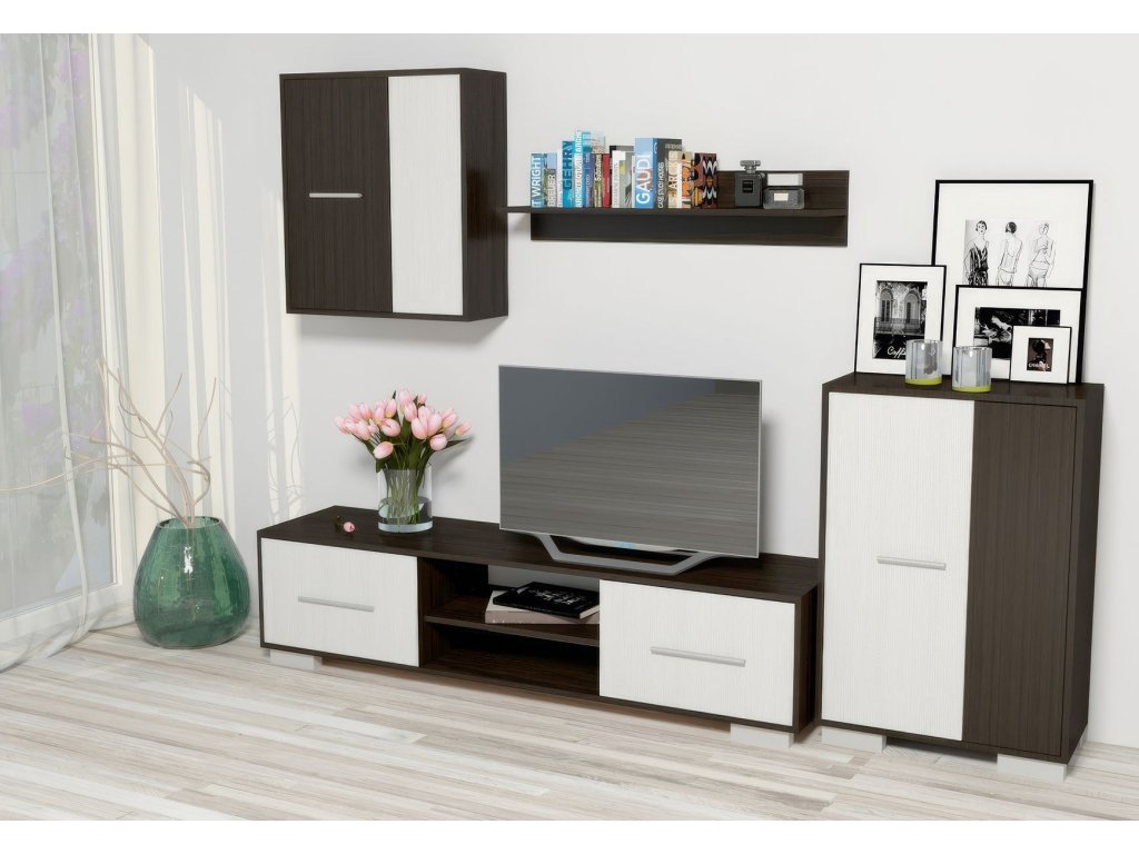 Moderní obývací stěna vhodná i do menších bytů. Tato sestava je vyrobena z kvalitního lamina. Sestava se skládá ( šířka/výška/hloubka ) - TV stolek ( 160 x 39 x 38 cm ), nástěnná skříňka ( 60 x 67 x 22 cm ), komoda ( 60 x 89 x 30 cm ) a police ( 90 x 19 x 19 cm ). Korpus a část předních dvířek je barvy wenge, dvířka jsou doplněna o barvu bílá diamant. Tato stěna se prodává jako sestava, jednotlivé díly nelze koupit zvlášť. Dodáváme v demontovaném stavu.Doplňkové parametry