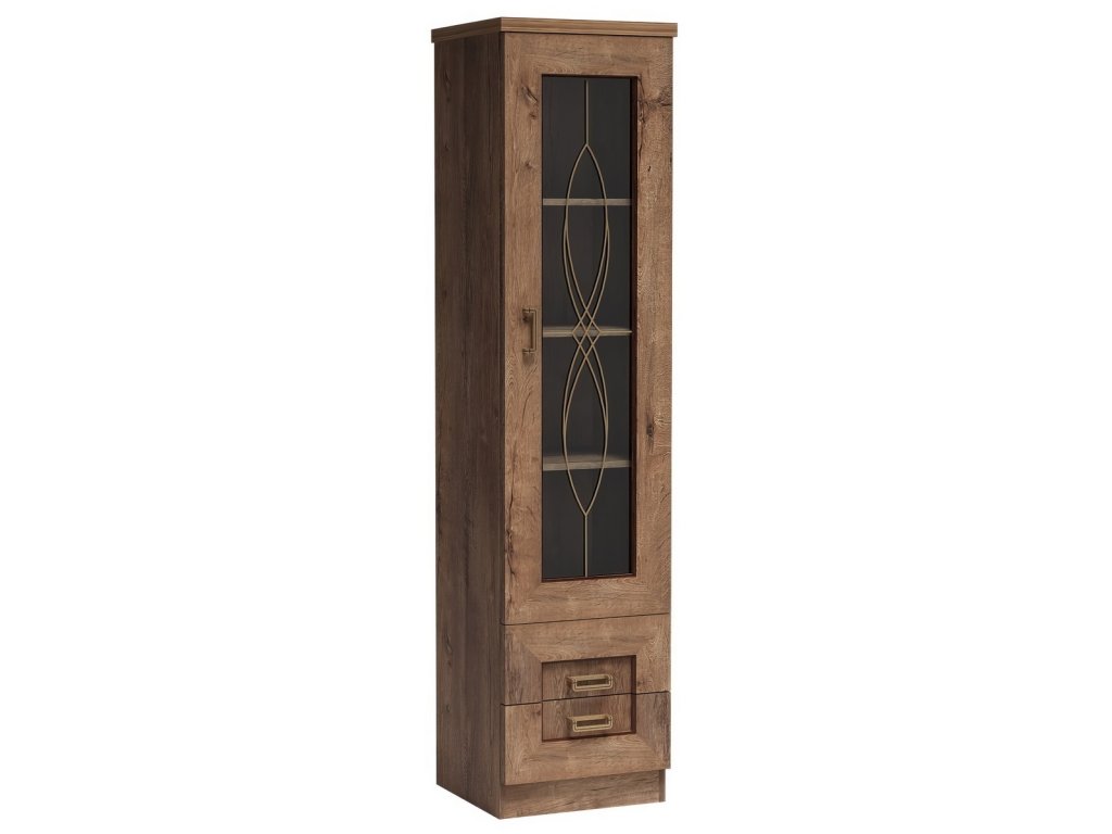 Obývací sestava. Systém je exkluzivní kolekce navržena v duchu vintage. Nábytek je vyroben z velmi kvalitní LTD o tloušťce 16 mm, horní deska zesílena na 32 mm, lišty na čele nábytku jsou MDF, hrany ABS. Tvrzené sklo ve vitrínách je jemně zdobené. Elegantní úchyty jsou z kovu. Barevné provedení je dub lefkas. Sestava se skládá ( šxhxv ) - široká vitrína ( 90 x 44 x 190 cm ), úzká vitrína ( 46 x 44 x 190 cm ), tv stolek ( 118 x 50 x 50 cm ) a závěsná police ( 118 x 35 x 38 cm ). V naší nabídce naleznete další sortiment z řady. Dodáváme v demontovaném stavu.Doplňkové parametry