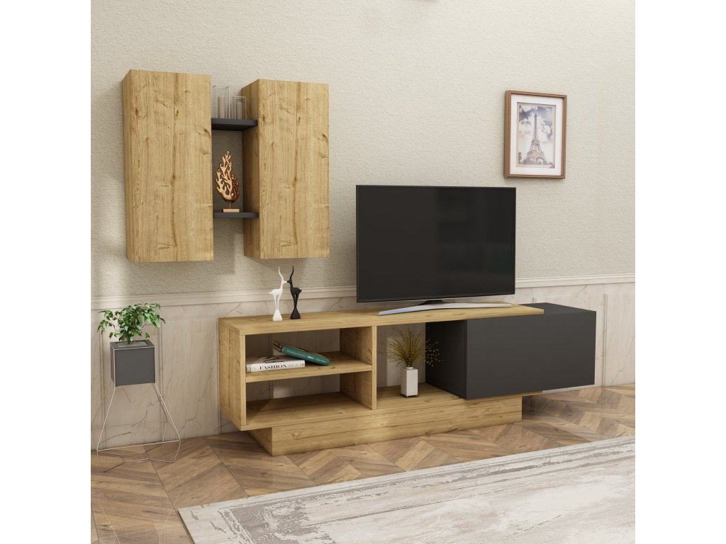 Obývací stěna je ideálním řešením pro ty, kteří hledají stylové a praktické uspořádání nábytku do obývacího pokoje. Tato moderní sestava zahrnuje televizní stolek a nástěnnou skříňku, které společně tvoří harmonický celek. Kvalitní materiály a precizní zpracování zajišťují dlouhou životnost a elegantní vzhled.