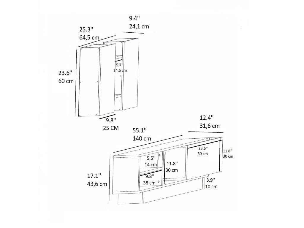 - Televizní stolek: 140 x 31,6 x 43,6 cm