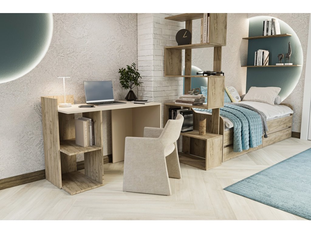 je psací stůl v moderním a jednoduchém provedení. Barevné provedení: satén, dub Craft. Disponuje jednou polickou.