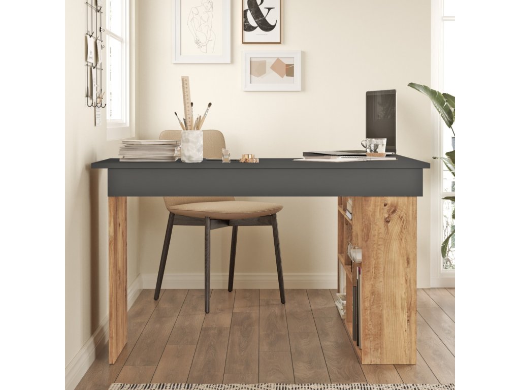 Psací stůl přináší kombinaci loftového designu a funkčnosti přímo do vaší kanceláře, pracovny či dětského pokoje. Jeho rohová konstrukce optimalizuje prostor a zvyšuje efektivnost vaší práce.