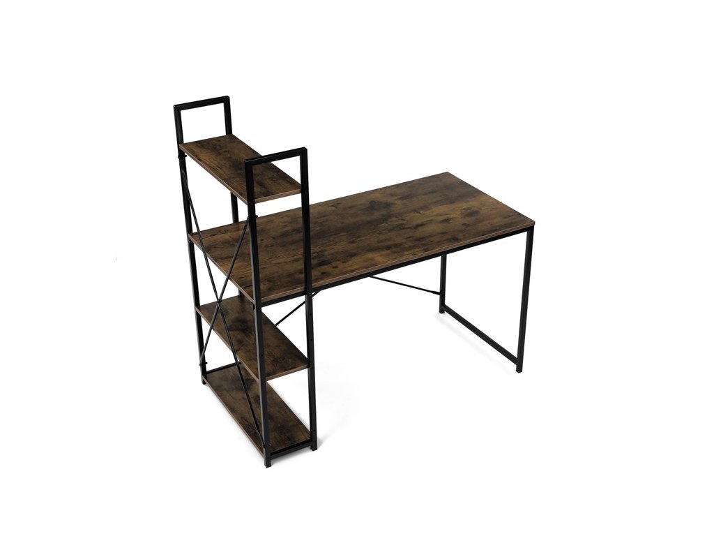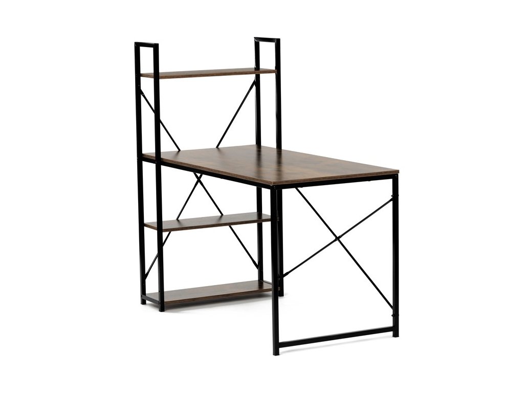 Pracovní stůl značky Autronic v industriálním stylu kombinuje funkčnost a moderní design. Hnědá MDF deska s dekorem starého dřeva a matnou úpravou přináší do interiéru teplý, přírodní vzhled. Stabilní černá kovová konstrukce se čtvercovými nohami zaručuje pevnost a odolnost. Praktické policie po straně poskytují dostatek úložného prostoru pro knihy, dokumenty nebo dekorace, což oceníte v každé pracovně. Stůl se hodí do domácí kanceláře či pracovny a díky svému industriálnímu vzhledu snadno zapadne do moderních interiérů.Rozměr police: 60 x 21 cm.