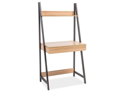 šířka: 74 cm | výška: 147 cm | hloubka: 48 cm Jednoduchý, ale praktický pracovní stůl se zásuvkou. Zajímavá konstrukce nožek stolu má nahoře poličku. Konstrukce je kovová tmavě...