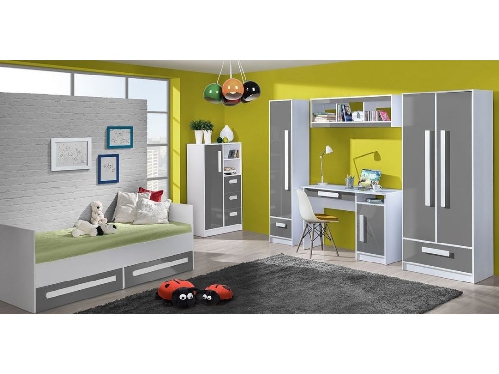 Pracovní stůl se zásuvkou a policovou skříní ze sektorové řady GULLIWER, která se vyznačuje netradičním zpracováním barev a originalitou úchytů. Tento styl nábytku zaujme každou mladší generaci. Psací stůl je vyroben z kvalitní LTD desky hraněné ABS lištou. Korpus je v barvě bílá mat, dveře jsou barvě šedá lesk. Úchytky jsou v barvě bílé. Sektorový nábytek GULLIWER má široký výběr prvků, který Vám zaručí sestavit si dětský nebo studentský pokoj, ložnici či kancelář podle svých potřeb, přání a představ. Dodáváme v demontovaném stavu.Doplňkové parametry