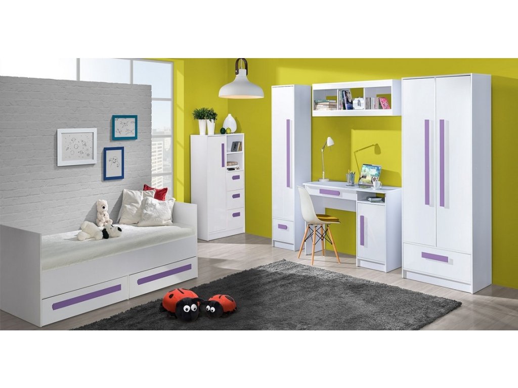 Pracovní stůl se zásuvkou a policovou skříní ze sektorové řady GULLIWER, která se vyznačuje netradičním zpracováním barev a originalitou úchytů. Tento styl nábytku zaujme každou mladší generaci. Psací stůl je vyroben z kvalitní LTD desky hraněné ABS lištou. Korpus je v barvě bílá mat, u dveří je možnost výběru ze 4 barev v lesku. Úchytky je také možno zvolit dle vlastního výběru z 6-ti barevných odstínů. Sektorový nábytek má široký výběr prvků, který Vám zaručí sestavit si dětský nebo studentský pokoj, ložnici či kancelář podle svých potřeb, přání a představ. Dodáváme v demontovaném stavu. Postup při objednávání: Nejprve si zvolte barvu dvířek v lesku ( viz barva ), poté si zvolte barvu úchytů ( viz rolovací okno ).Doplňkové parametry