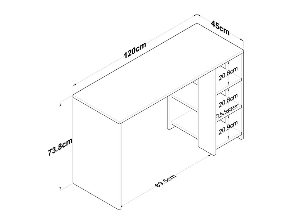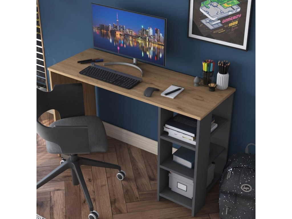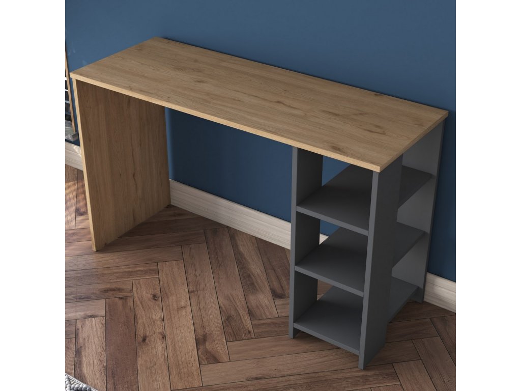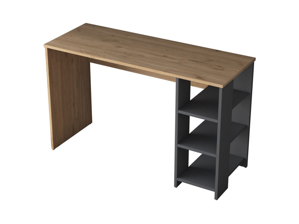 Moderní pracovní stůl navržený pro efektivní práci i studium. Tento elegantní stůl je ideální pro dětský pokoj nebo kancelář či pracovnu, čímž přináší do každého interiéru stylový a čistý vzhled. Materiál je Melamin, VT laminát (18 mm). Barevné provedení je ořech/antracit. Stůl nabízí 3 police pro praktické úložné místo. Kvalitní melaminový povrch zajišťuje snadnou údržbu a dlouhou životnost. Dodáváme v demontovaném stavu.