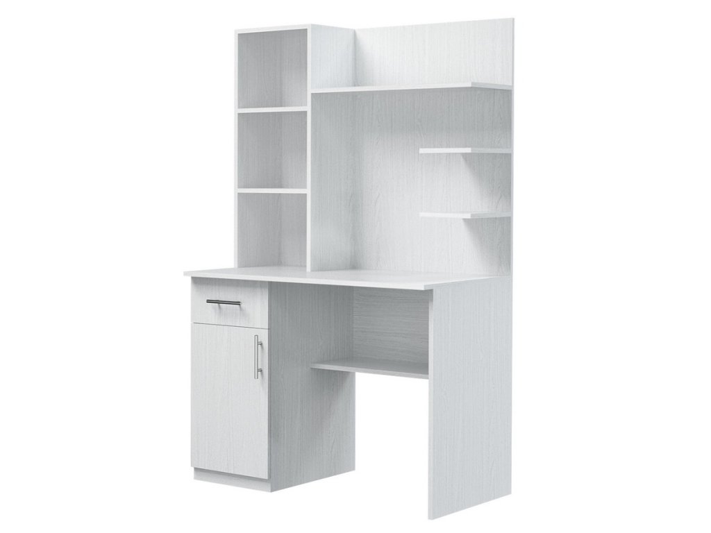 Praktický pracovní stůl s policovým nástavcem je vyroben z LTD desky odolné vůči poškrábání v barvě bílá strukturální. Stůl má na levé straně skříňku a nad ní zásuvku. Výška stolu včetně nástavce je 166,5 cm, hloubka nástavce je 30 cm. Výška pracovní plochy je 76,5 cm. Dodáváme v demontovaném stavu.Doplňkové parametry