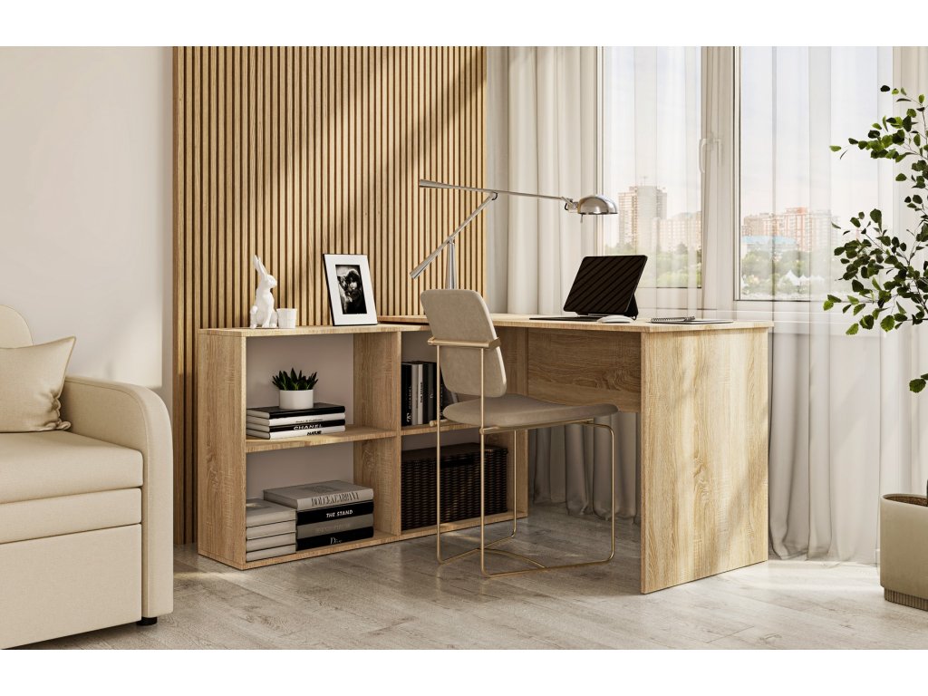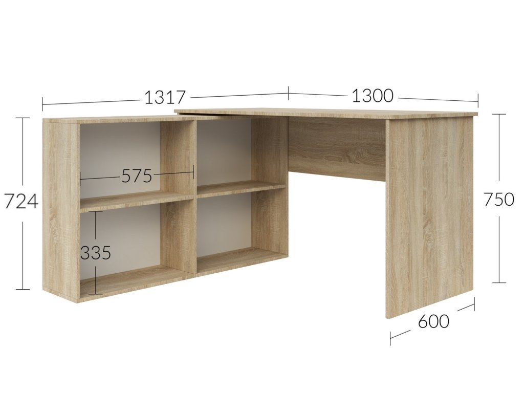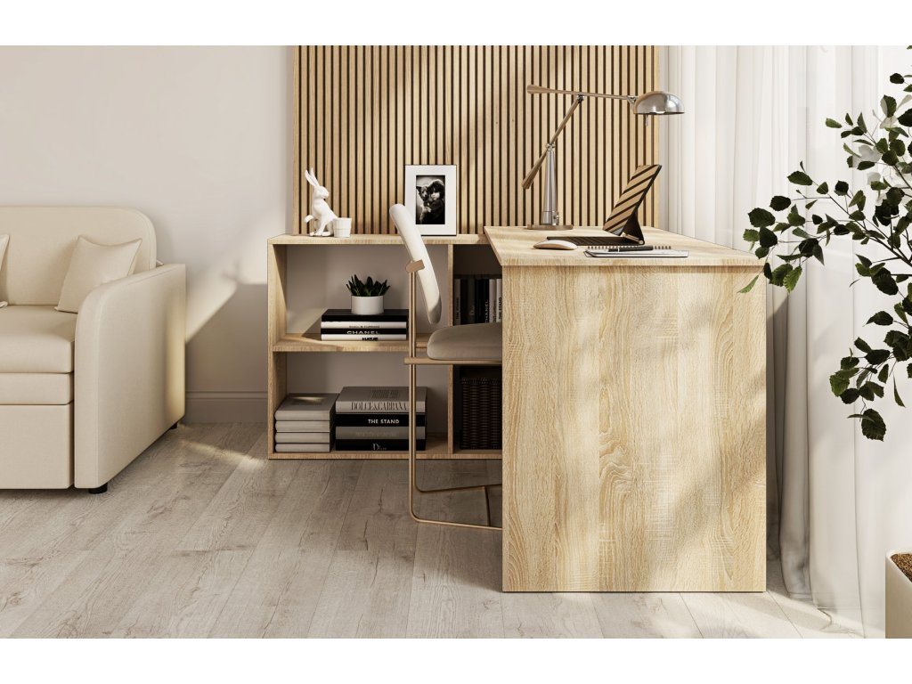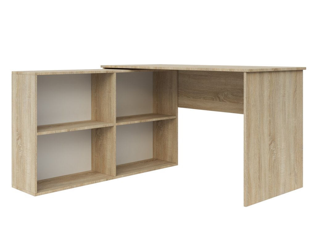 Pracovní stůl je praktickou volbou do studentského pokoje či kanceláře. Sestává ze samotného stolu a regálu předěleného na čtyři částí vyrobený z desky LTD v barvě dub sonoma. Dodáváme v demontovaném stavu.Doplňkové parametry