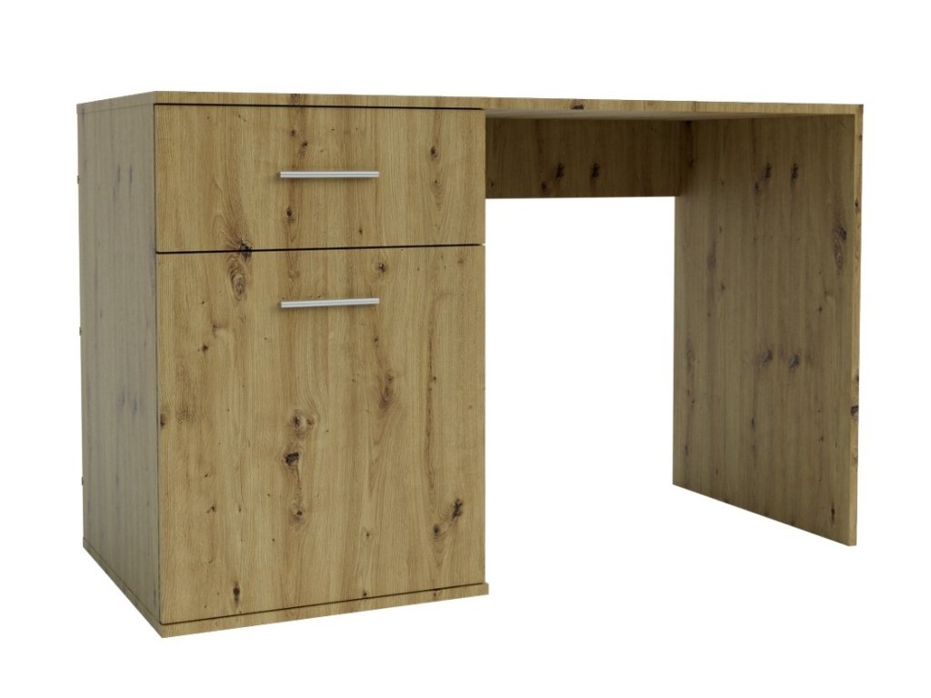 Psací stůl je nejen praktický, ale také mimořádně funkční prvek každé kanceláře či dětského pokoje. Je vyroben z kvalitní LTD desky, která je nenáročná na údržbu. Skříňka ve spodní části je doplněna o zásuvku na teleskopických kolejnicích. Barevné provedení - dub artisan, provedení je levé, lze zakoupit i opačnou verzi. Dodáváme v demontovaném stavu.Doplňkové parametry