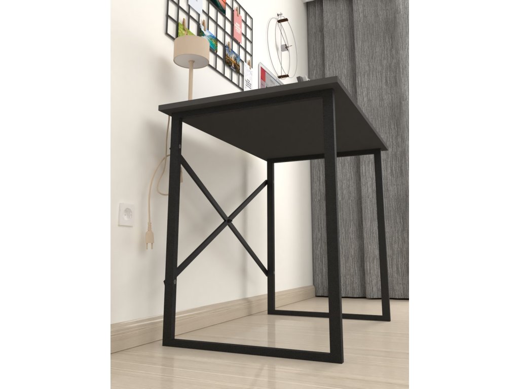 Stylový psací stůl je z kovového rámu v matné černé barvě a pracovní deska je vyrobena z kvalitní LTD desky v barvě antracit. Dodáváme v demontovaném stavu.Doplňkové parametry