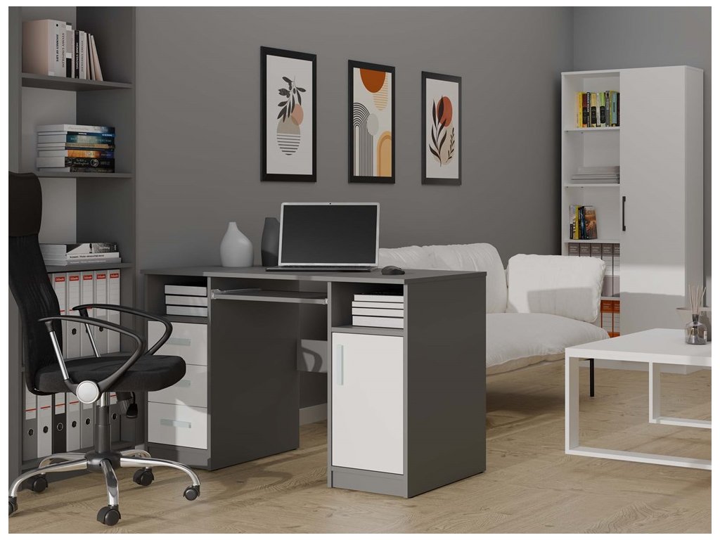 Psací stůl DELTA 1D3S antracit/bílá