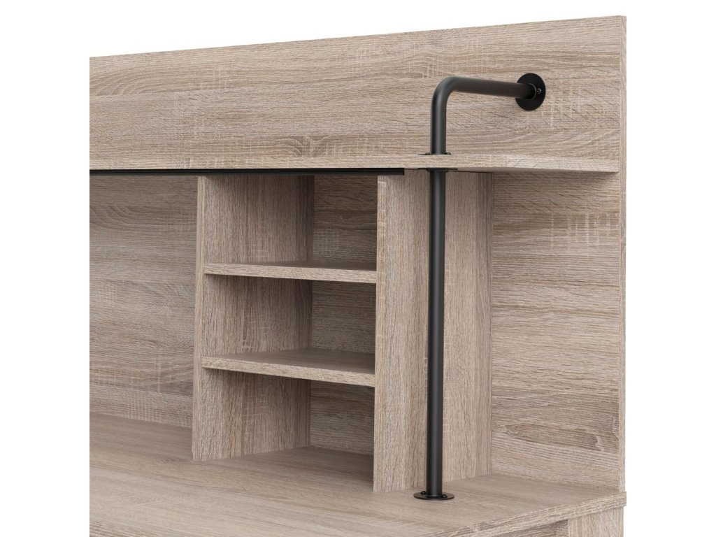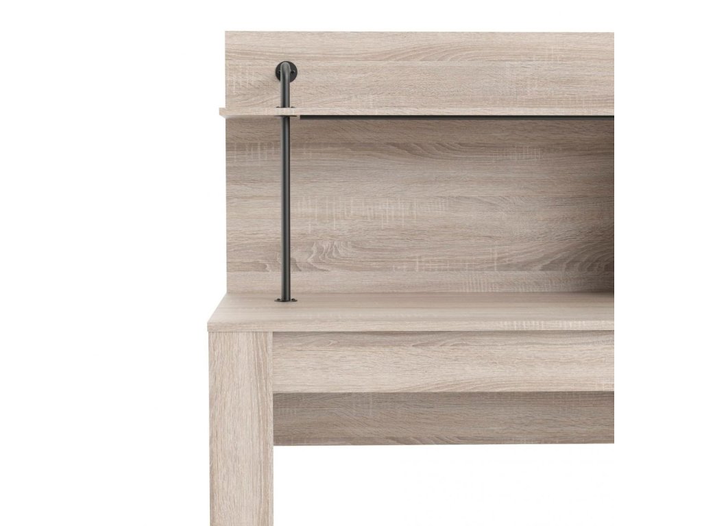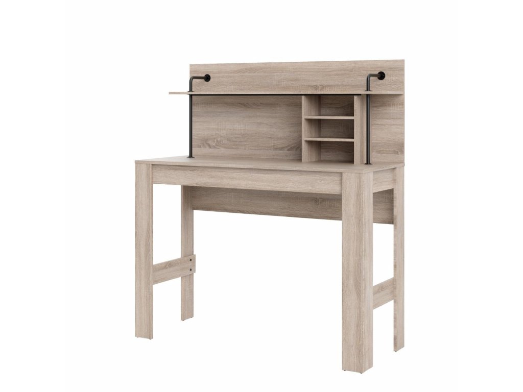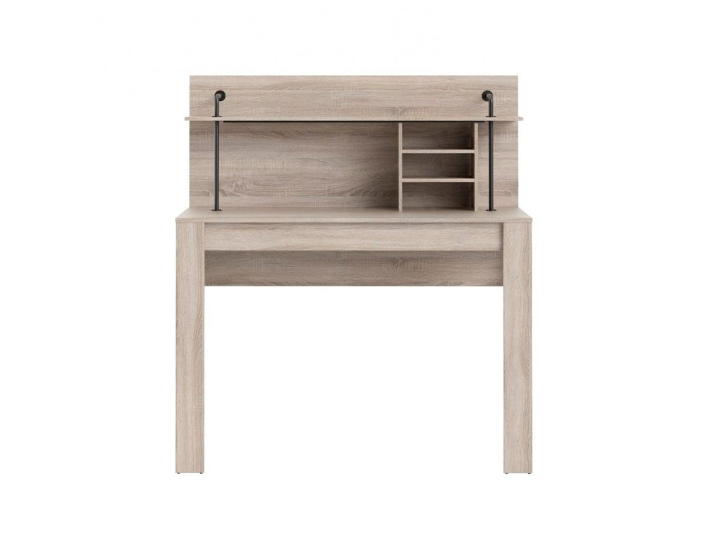 šířka: 115 cm | výška: 117 cm | hloubka: 64 cm Pracovní stůl s integrovanou policí je vyroben z desky LTD v barevném provedení černá/dub sonoma. Přední nohy stolu jsou kovové....