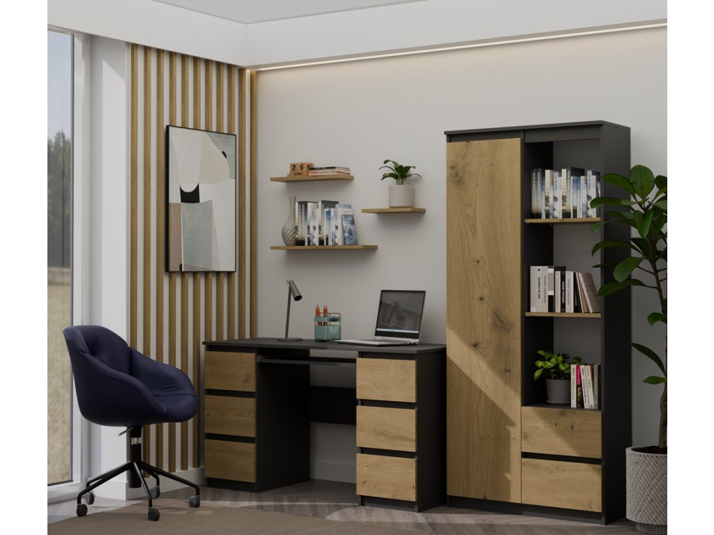 Psací stůl KUBA antracit/dub artisan
