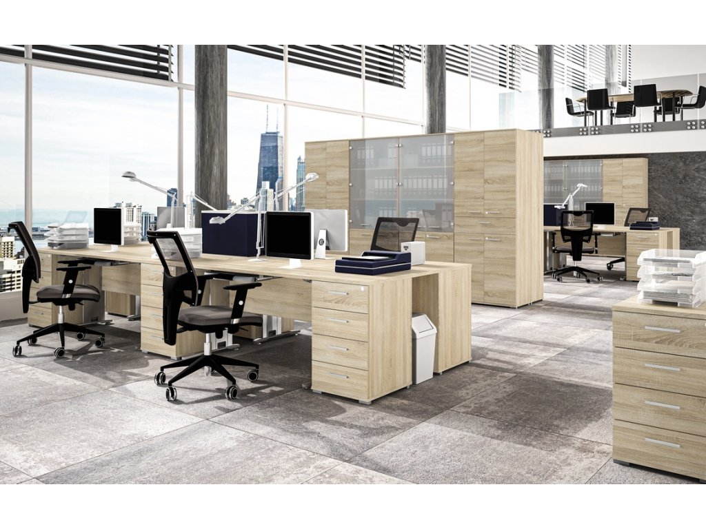 šířka: 120 cm | výška: 78 cm | hloubka: 60 cm Pracovní stůl ze sektorové řady VEGAS má na pravé straně 4 zásuvky a vysouvací desku na klávesnici. Systém VEGAS je exkluzivní...