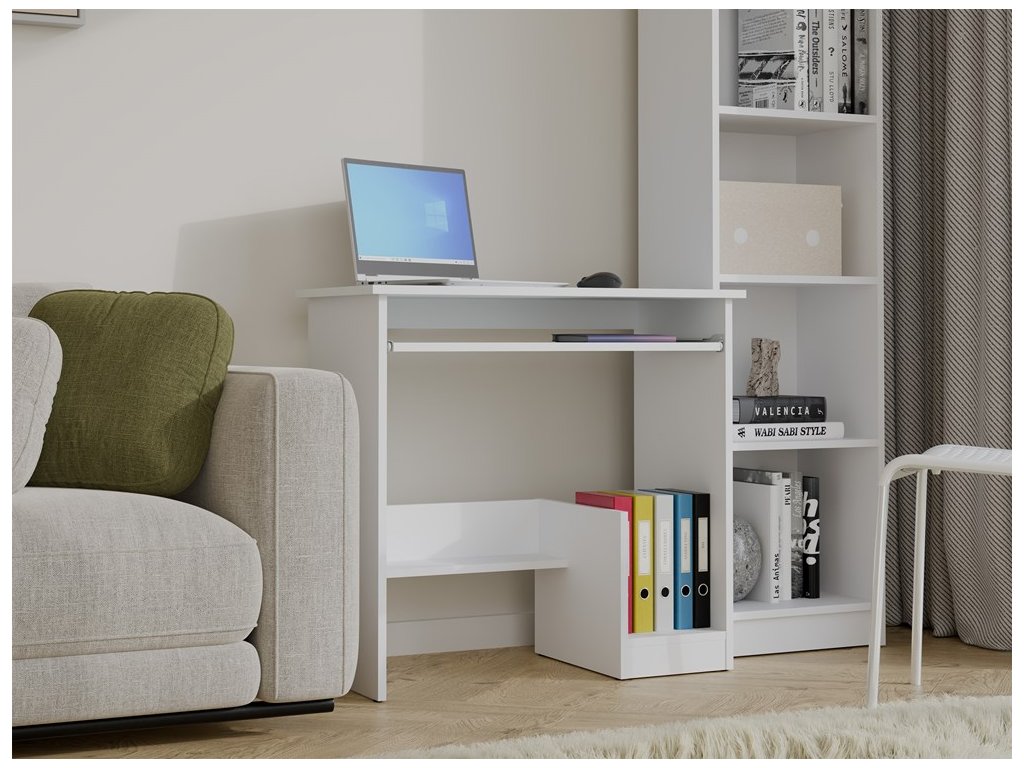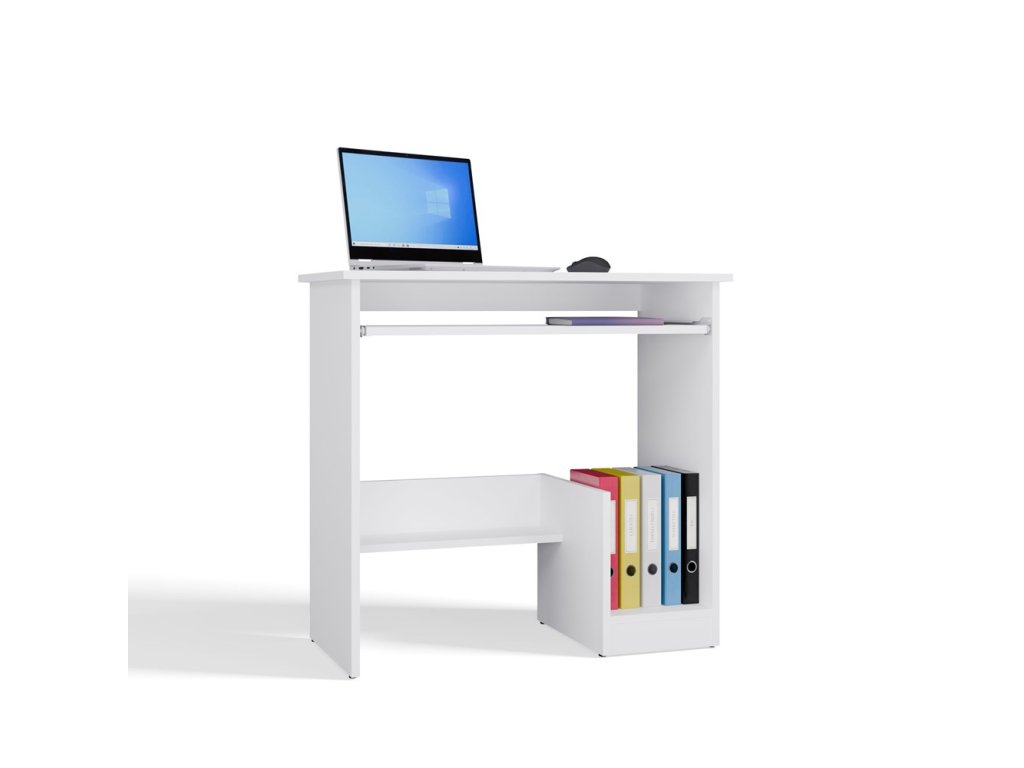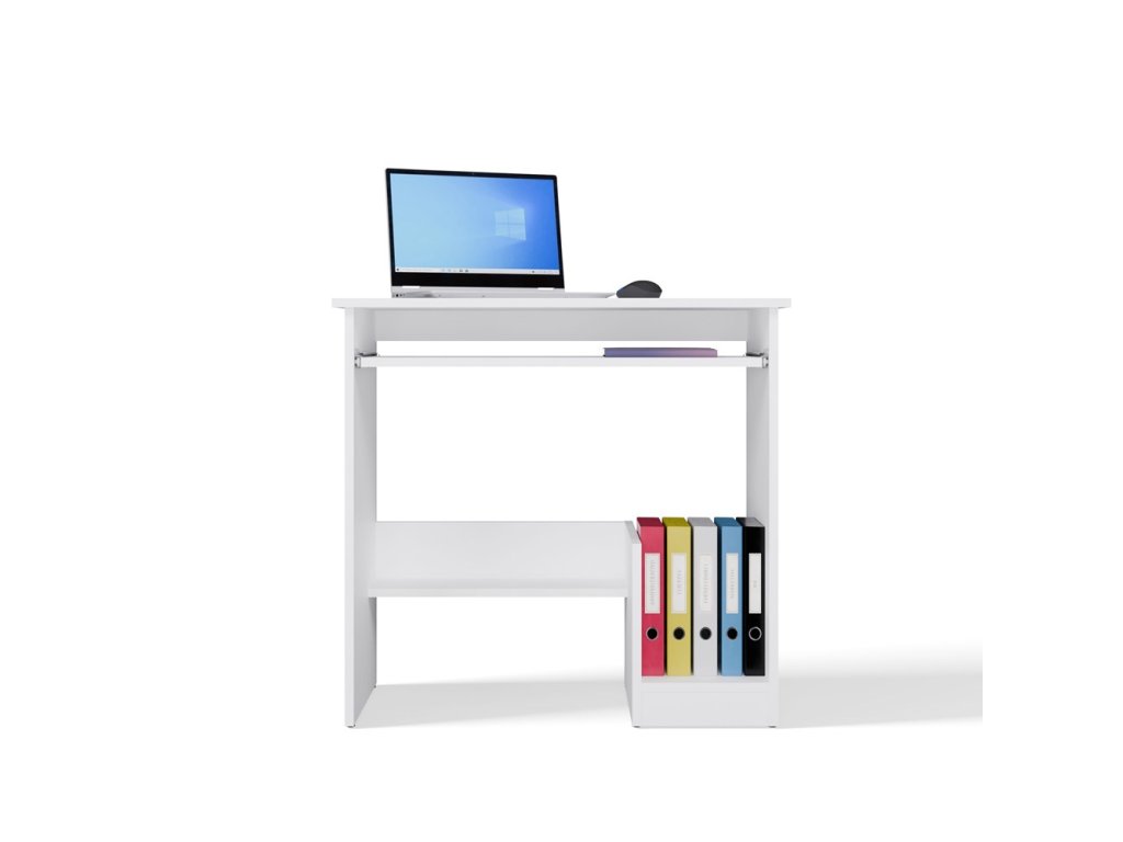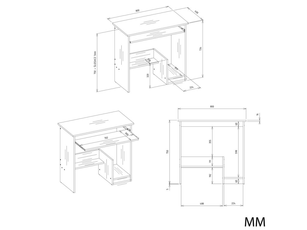 Stůl je vybaven vysouvací policí na klávesnici, která zvyšuje ergonomii a ponechává dostatek prostoru na pracovní ploše. Pod deskou se nachází otevřený prostor vhodný pro umístění počítačové jednotky nebo větších pořadačů, zatímco dolní police poskytuje další úložný prostor na dokumenty či drobné kancelářské potřeby.