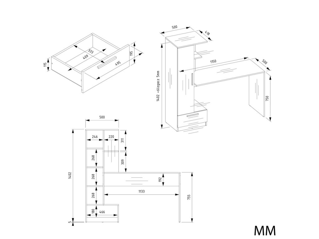 šířka: 130 cm | výška: 76 cm | hloubka: 51 cm Psací Stůl KUBA je ideální volbou pro ty, kteří hledají funkční a moderní nábytek pro práci doma i v kanceláři.Hlavní výhody: 6...