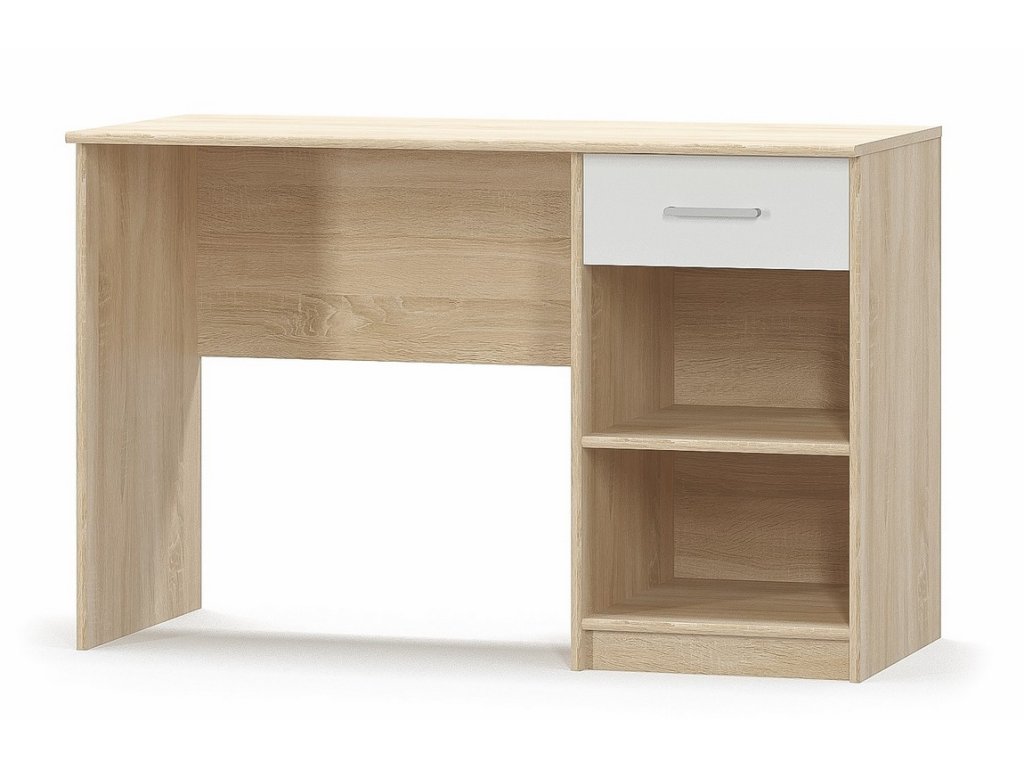 Pracovní stůl s jednou zásuvkou ze sektorového nábytku v moderním provedení. Stůl je vyroben z kvalitní LTD desky v barevné kombinaci dub sonoma / bílá mat. Nabídka komponentů této sektorové řady umožňuje sestavit si nábytek do obývacího, dětského nebo studentského pokoje dle vlastních představ. Dodáváme v demontovaném stavu.Doplňkové parametry