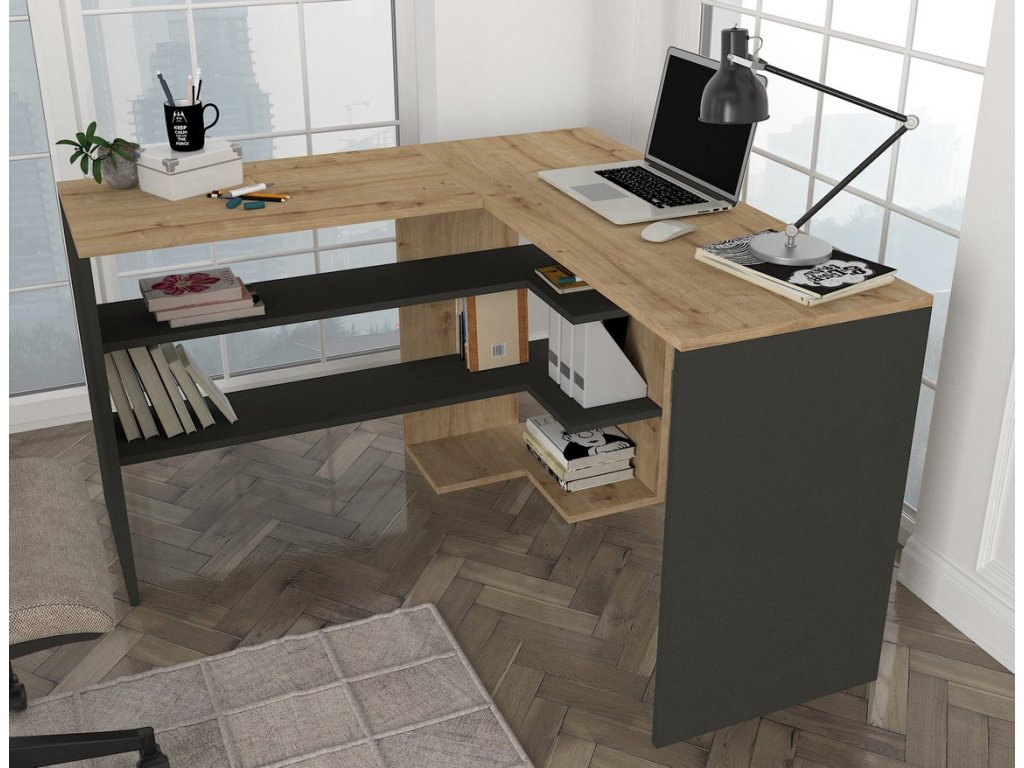 Rohový pracovní stůl je vyroben z kvalitního lamina o tl.18 mm hraněné PVC páskou, odolného proti poškrábání v kombinaci barev sapphire/antracit. Dodáváme v demontovaném stavu.Doplňkové parametry