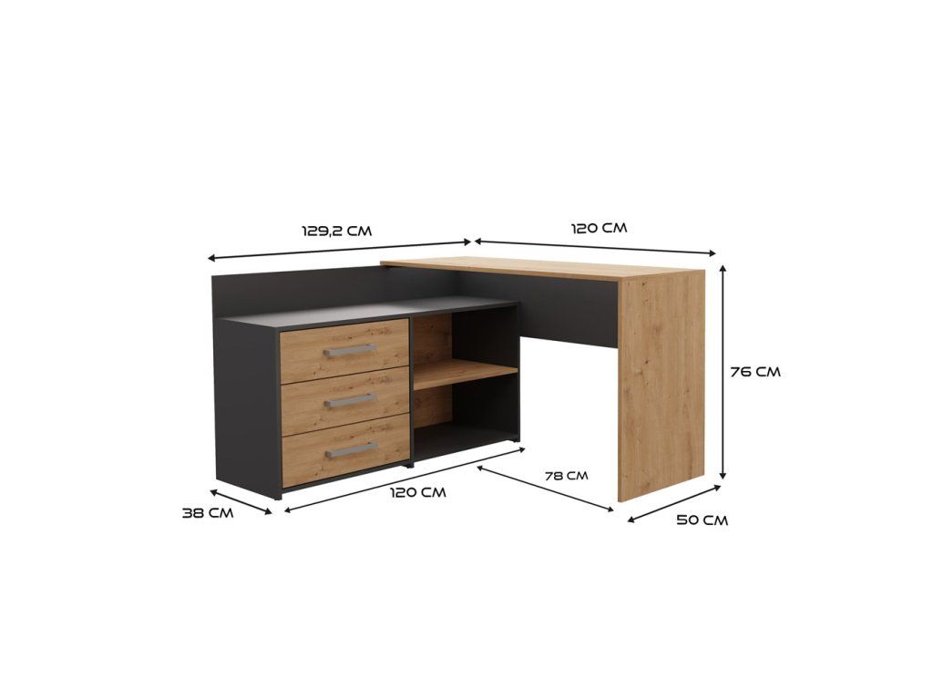 Rohový psací stůl s komodou DANY antracit/dub artisan