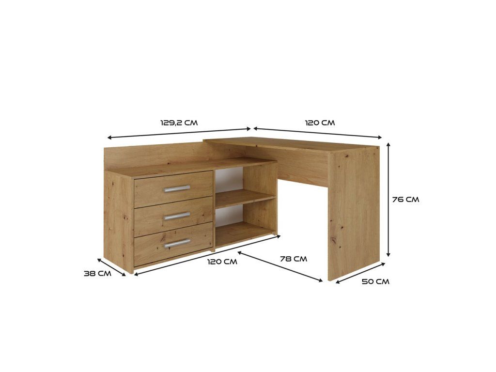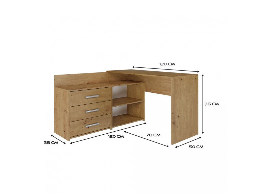 šířka: 120cm | výška: 76 cm | hloubka: 50 cm Velký rohový stůl DANY se třemi šuplíky, který se skvěle hodí do kanceláře nebo domova, kde potřebujeme pracovní nebo studijní...