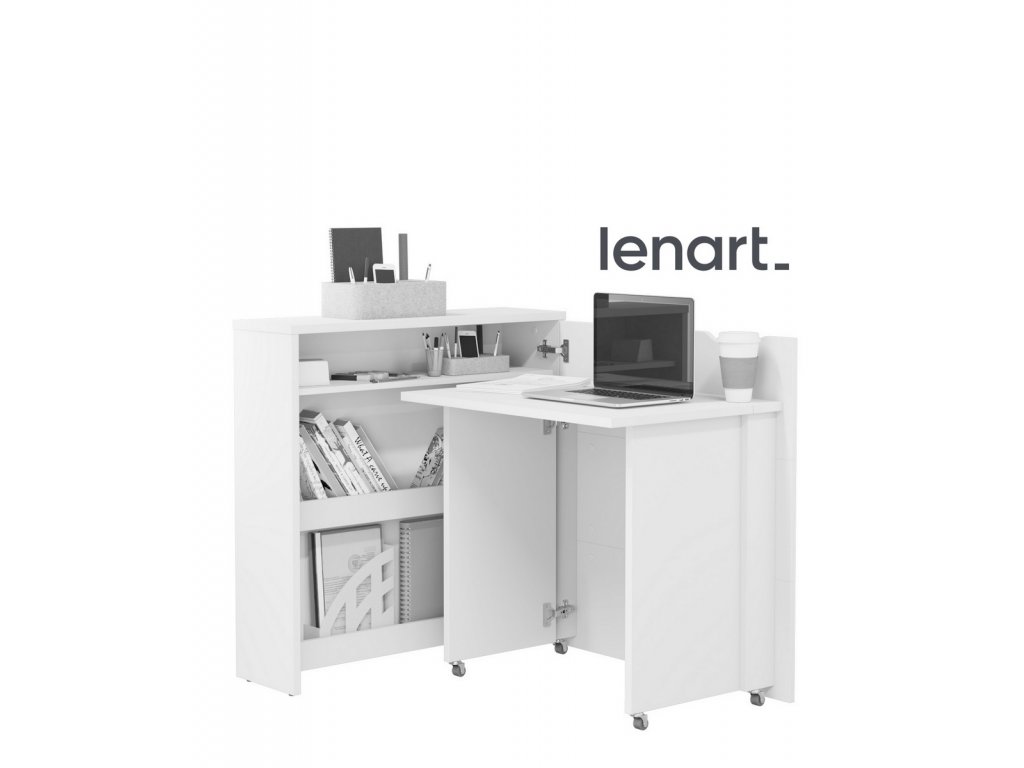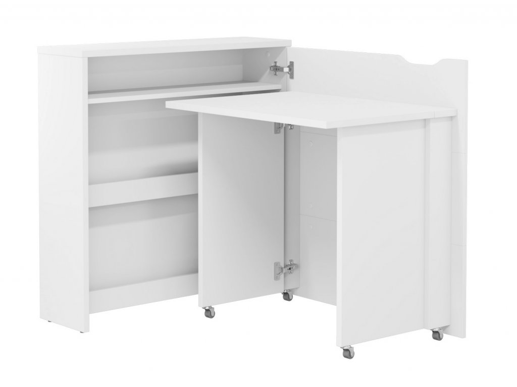 Rozkládací psací stůl v moderním a jednoduchém designu snadno složíte do komody a ušetříte tím spousty místa. Díky praktickým policím máte vše po ruce. Stůl je k dispozici ve dvou variantách - pravé nebo levé. Vyberte si ten, který lépe vyhovuje Vašim požadavkům. Kolečka umístěná pod bočními podpěrami usnadňují otevírání a zavírání stolu. Stůl je vyroben z lamina tloušťky 16mm, pracovní deska stolu z lamina tloušťky 22 mm. Maximální nosnost police je 5 kg, pracovní desky 3 kg. Šířka stolu po rozložení je 136 cm. Dodáváme v demontovaném stavu.Doplňkové parametry
