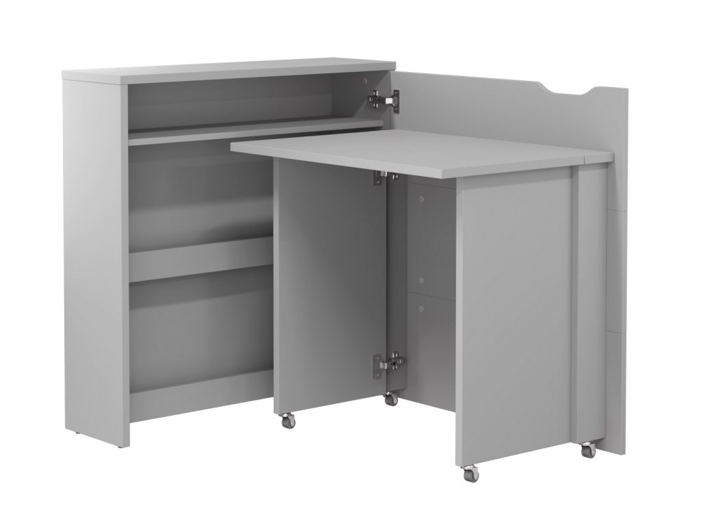 Rozkládací psací stůl v moderním a jednoduchém designu snadno složíte do komody a ušetříte tím spousty místa. Díky praktickým policím máte vše po ruce. Stůl je k dispozici ve dvou variantách - pravé nebo levé. Vyberte si ten, který lépe vyhovuje Vašim požadavkům. Kolečka umístěná pod bočními podpěrami usnadňují otevírání a zavírání stolu. Stůl je vyroben z lamina tloušťky 16mm, pracovní deska stolu z lamina tloušťky 22 mm. Maximální nosnost police je 5 kg, pracovní desky 3 kg. Šířka stolu po rozložení je 136 cm. Dodáváme v demontovaném stavu.Doplňkové parametry