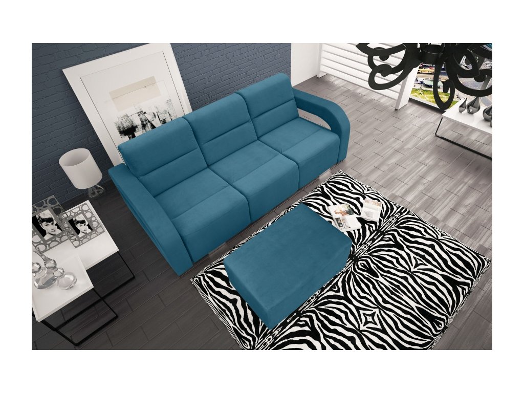 Pohovka Alza je rozkládací a součástí je i praktický úložný prostor a taburet. Zajímavé provedení područí, jí dodává lehkost a eleganci. Díky tomu nepůsobí mohutně a hodí se do každého interiéru. Výplň pohovky tvoří vlnité pružiny faliste v kombinaci s kvalitní PUR pěnou. Rozkládání je díky automatu jednoduché a po rozložení vznikne lůžko vhodné k příležitostnému přespání. Pohovku dodáváme v několika barevných provedeních, které také naleznete v naší nabídce. Rozpis rozměrů najdete na přiloženém obrázku s nákresem. V ceně pohovky je i vyobrazený taburet. Ostatní dekorace nejsou v ceně.