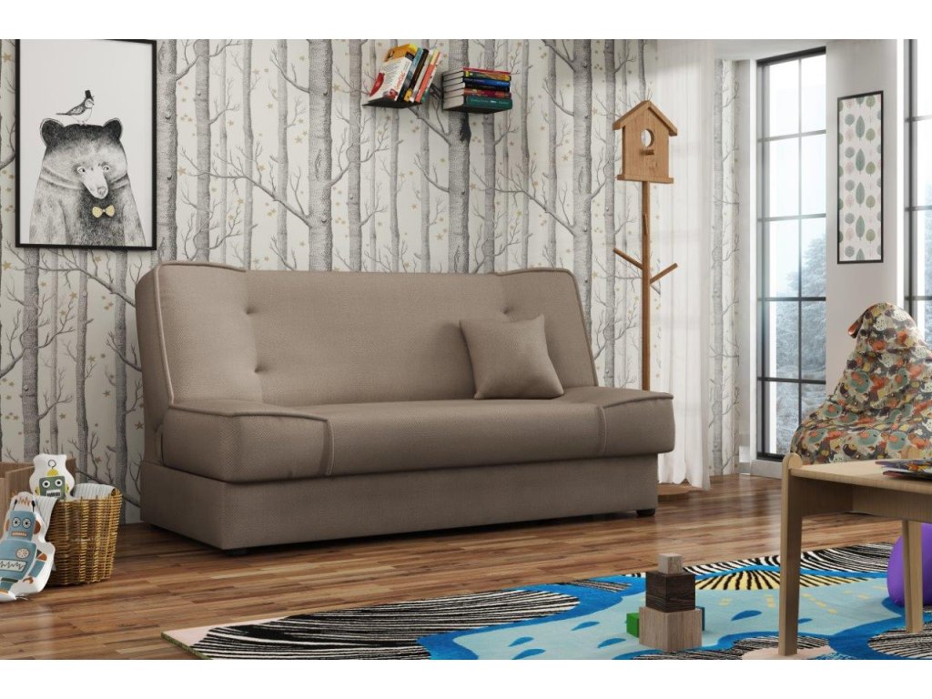 Pohovka Bega je vyrobená v jednoduchém a zároveň nadčasovém designu, který se hodí do každého interiéru a skvěle ho doplní. Díky svým rozměrům nezabere moc místa a je vhodná i do malých pokojů. Výplň sedáku tvoří kombinace pružin bonell s kvalitní PUR pěnou. Pohovka je rozkládací a samozřejmostí je i nepostradatelný úložný prostor. Jednoduchým rozložením pomocí systému klik-klak vznikne lůžko k občasnému přespání. Vybrat si můžete z několika trendy odstínů. V ceně pohovky je 1 dekorační polštářek. Ostatní vyobrazené doplňky a dekorace nejsou v ceně.
