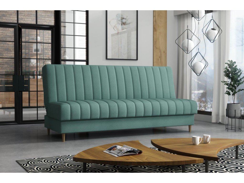 Pohovka Ejmy v sobě spojuje eleganci, funkčnost a příznivou cenu. Je vyrobená v jednoduchém nadčasovém designu, který se hodí do každého inferiéru. Umístit ji můžete nejen do obývacího pokoje, ale také např. do pracovny, nebo hostinského pokoje. Pohovka je rozkládací. Jednoduchým rozložením získáte lůžko k občasnému přespání Vaší návštěvy. Samozřejmostí je i praktický úložný prostor, který můžete využít třeba na lůžkoviny. Pohovku nabízíme v několika barevných provedeních. Vyobrazené doplňky a dekorace nejsou v ceně.