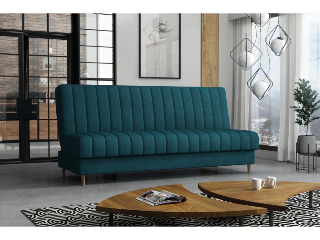 Pohovka Ejmy v sobě spojuje eleganci, funkčnost a příznivou cenu. Je vyrobená v jednoduchém nadčasovém designu, který se hodí do každého inferiéru. Umístit ji můžete nejen do obývacího pokoje, ale také např. do pracovny, nebo hostinského pokoje. Pohovka je rozkládací. Jednoduchým rozložením získáte lůžko k občasnému přespání Vaší návštěvy. Samozřejmostí je i praktický úložný prostor, který můžete využít třeba na lůžkoviny. Pohovku nabízíme v několika barevných provedeních. Vyobrazené doplňky a dekorace nejsou v ceně.