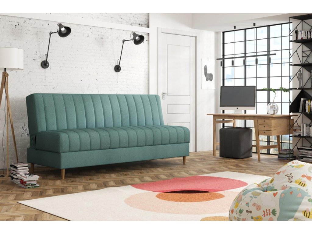 Pohovka Ejmy Mini v sobě spojuje eleganci, funkčnost a příznivou cenu. Je vyrobená v jednoduchém nadčasovém designu, který se hodí do každého inferiéru. Díky svým rozměrům se lehce vejde i do menší místnosti. Umístit ji můžete nejen do obývacího pokoje, ale také např. do pracovny, nebo hostinského pokoje. Pohovka je rozkládací. Jednoduchým rozložením získáte lůžko k občasnému přespání Vaší návštěvy. Samozřejmostí je i praktický úložný prostor, který můžete využít třeba na lůžkoviny. Pohovku nabízíme v několika barevných provedeních. Vyobrazené doplňky a dekorace nejsou v ceně.