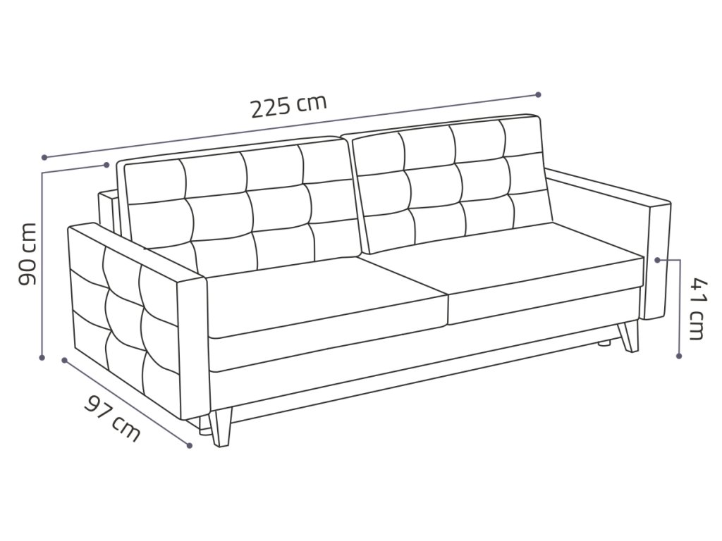 šířka: 204 cm | výška: 107 cm | hloubka: 90 cm Elegantní rozkládací trojsedák, který svým vzhledem a provedením zaručuje luxus a pohodlí. Výška sedu je 45 cm. Tento trojsedák...